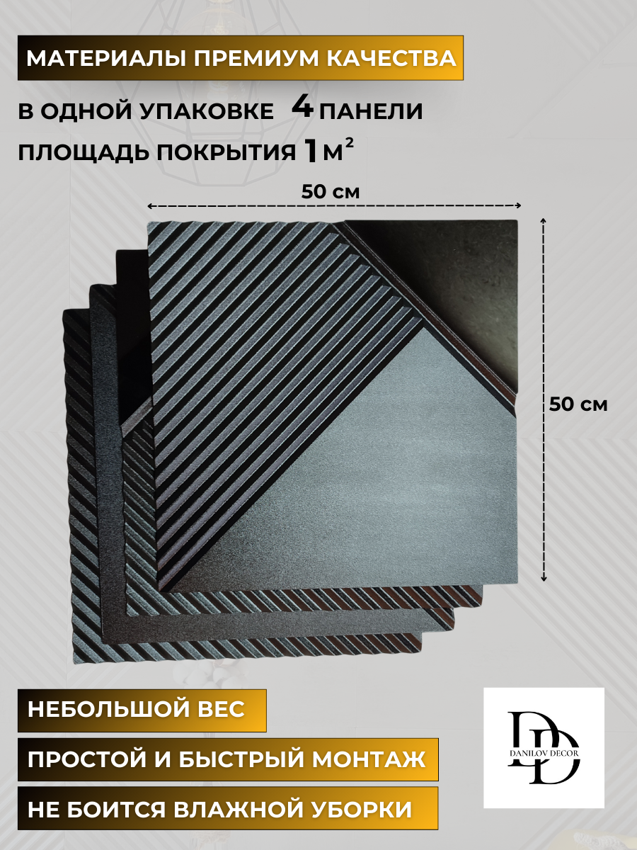 Купить Панель МДФ со вставками Danilov Decor "Аврора" черный шелк50x50, 4 штуки
