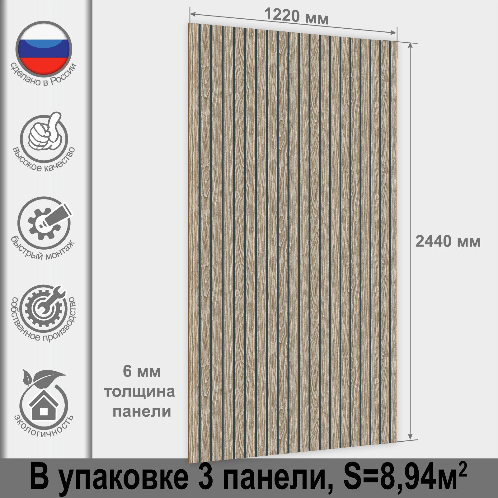 Стеновая панель МДФ 2440х1220х6мм, (3 шт), Планка Винтажная, матовая, рельефная интересное: