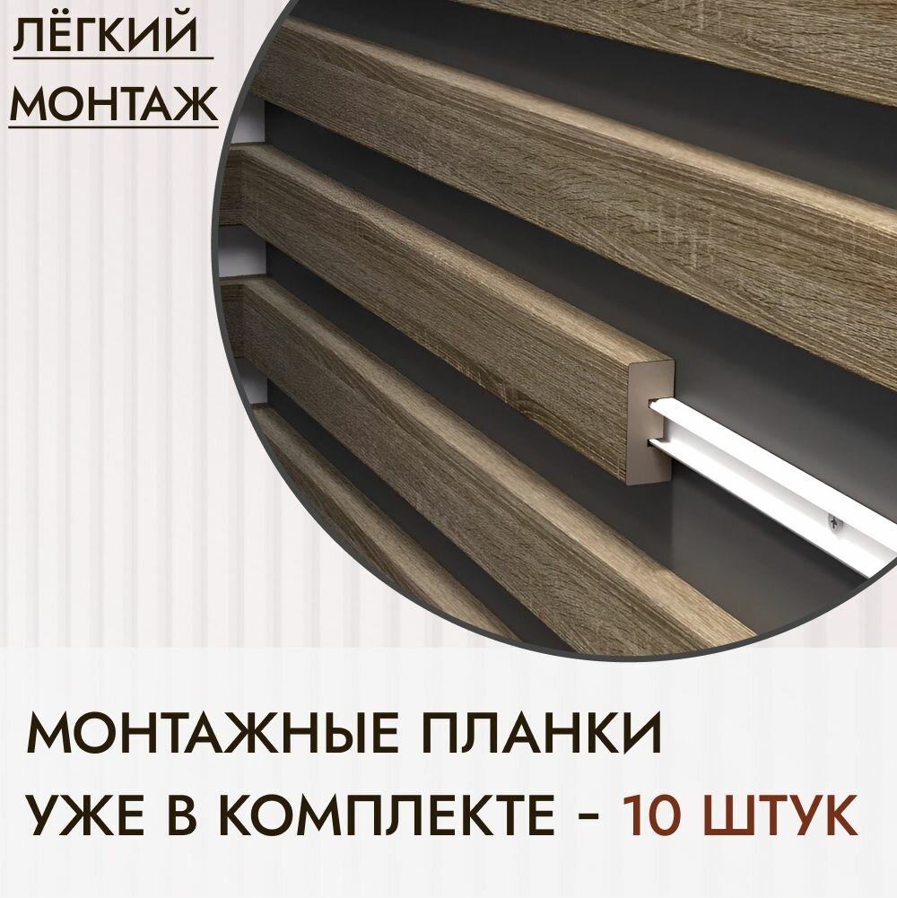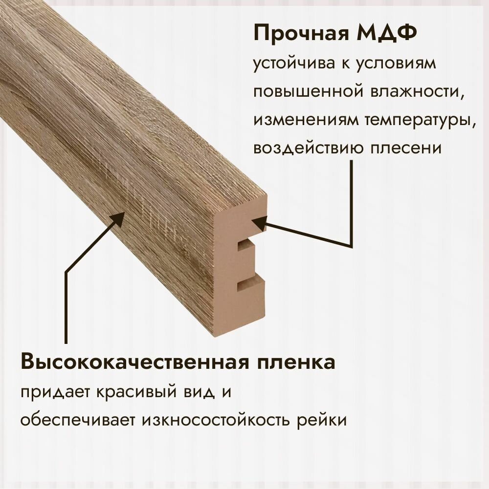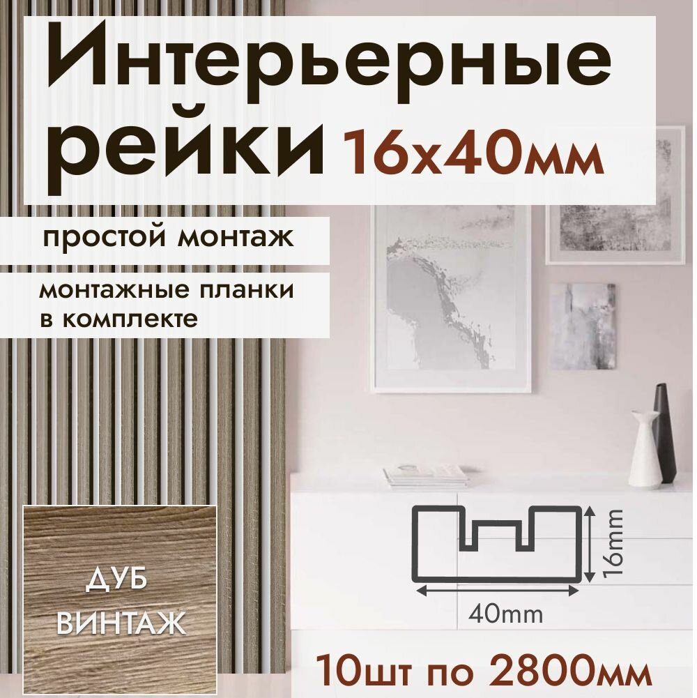 Рейка интерьерная МДФ для стен и потолков, с монтажной планкой, 40*16*2800мм, 10 штук, цвет Дуб Винтаж интересное: