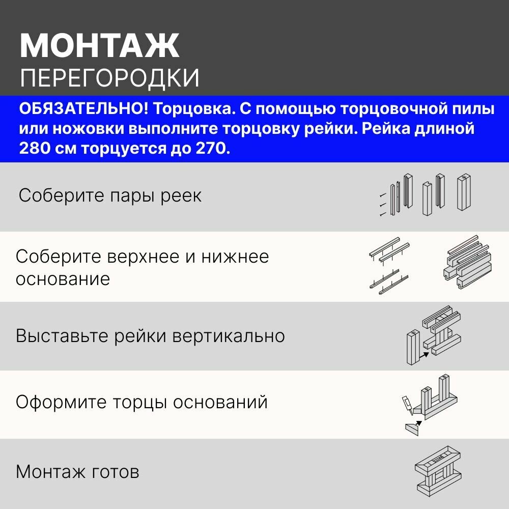 | Подробная комплектация | Интерьерная рейка - 10 шт. Монтажная планка - 10 шт. |