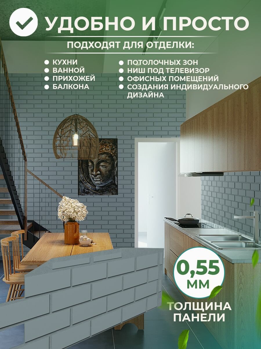 СохранитьПанели для стен не самоклеящиеся пластиковые, 3д стеновые панели под длинный кирпич , набор 10 шт. в сером цвете для кухни дачи прихожей балкона интересное: