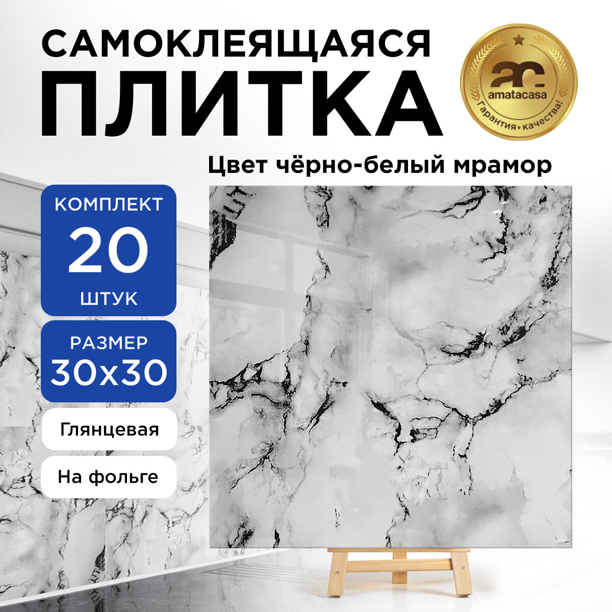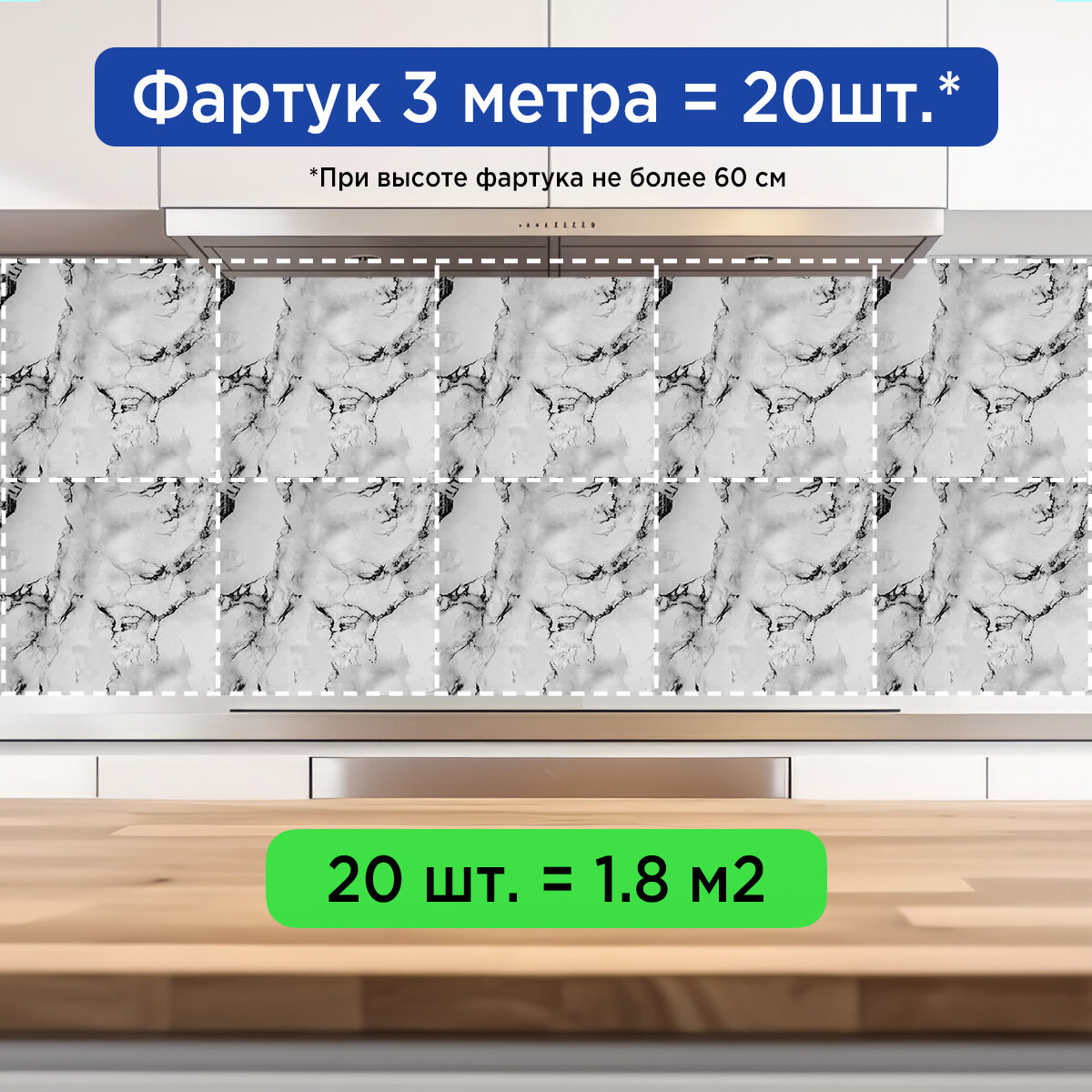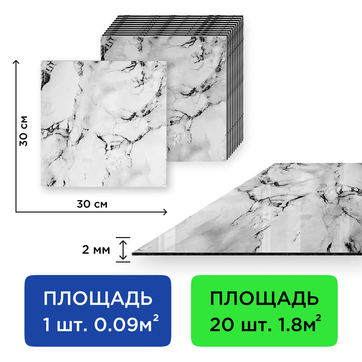 Самоклеющиеся влагостойкие стеновые панели для кухни и ванной ПВХ "Черно-белый мрамор" 30х30 см 20 шт. самоклеющаяся плитка на стену декор вместо кухонного фартука интересное: