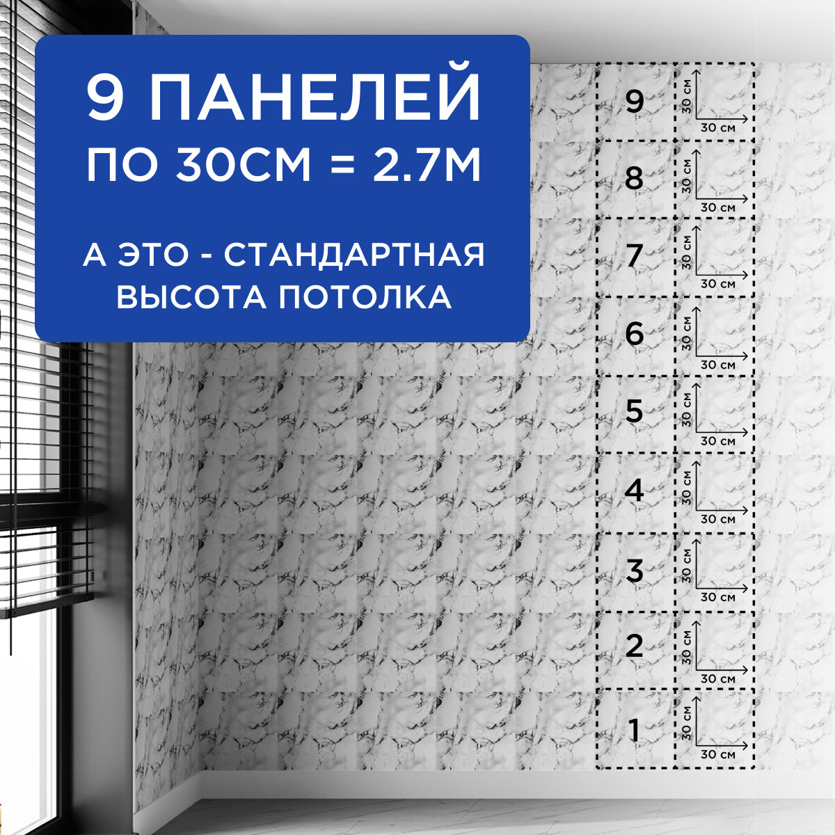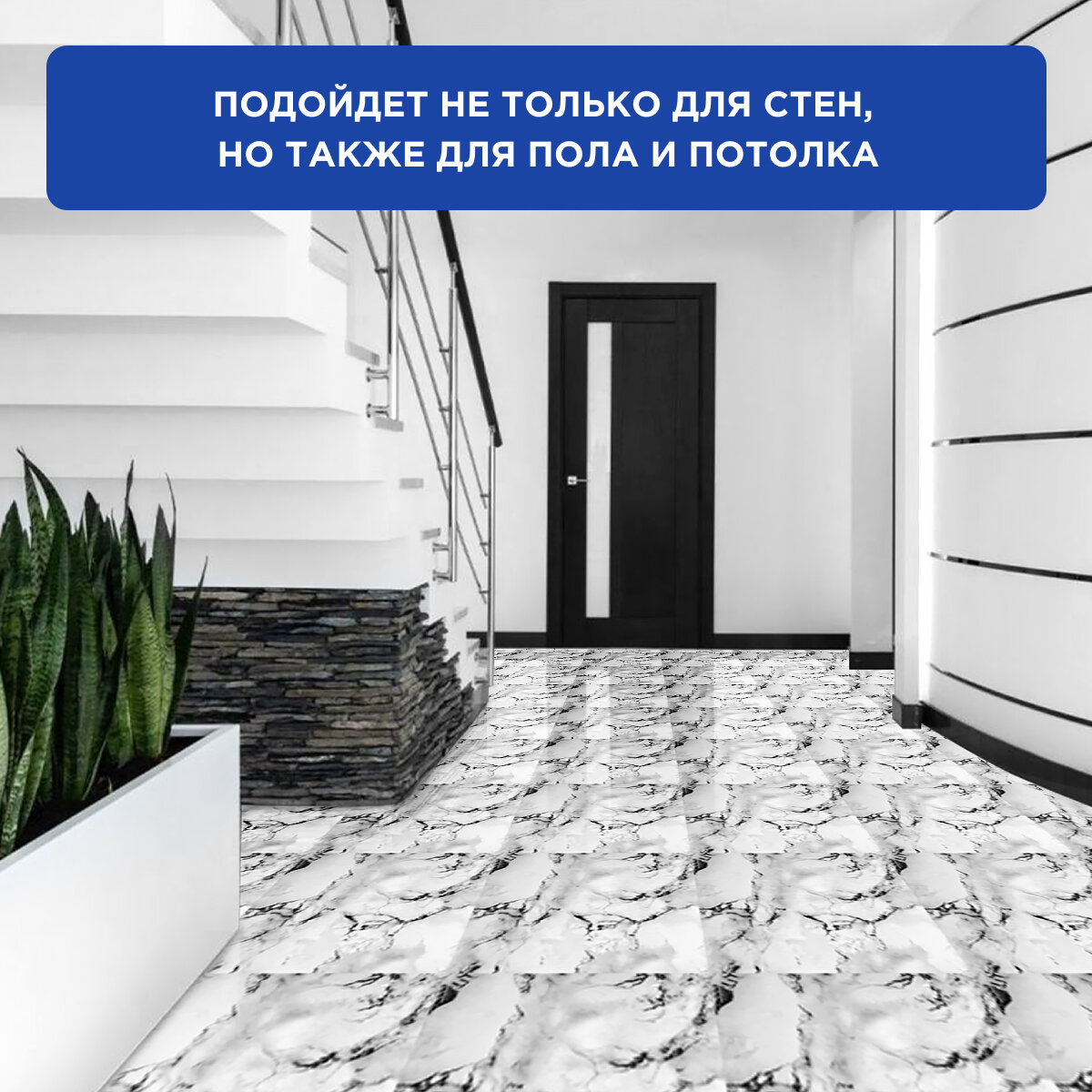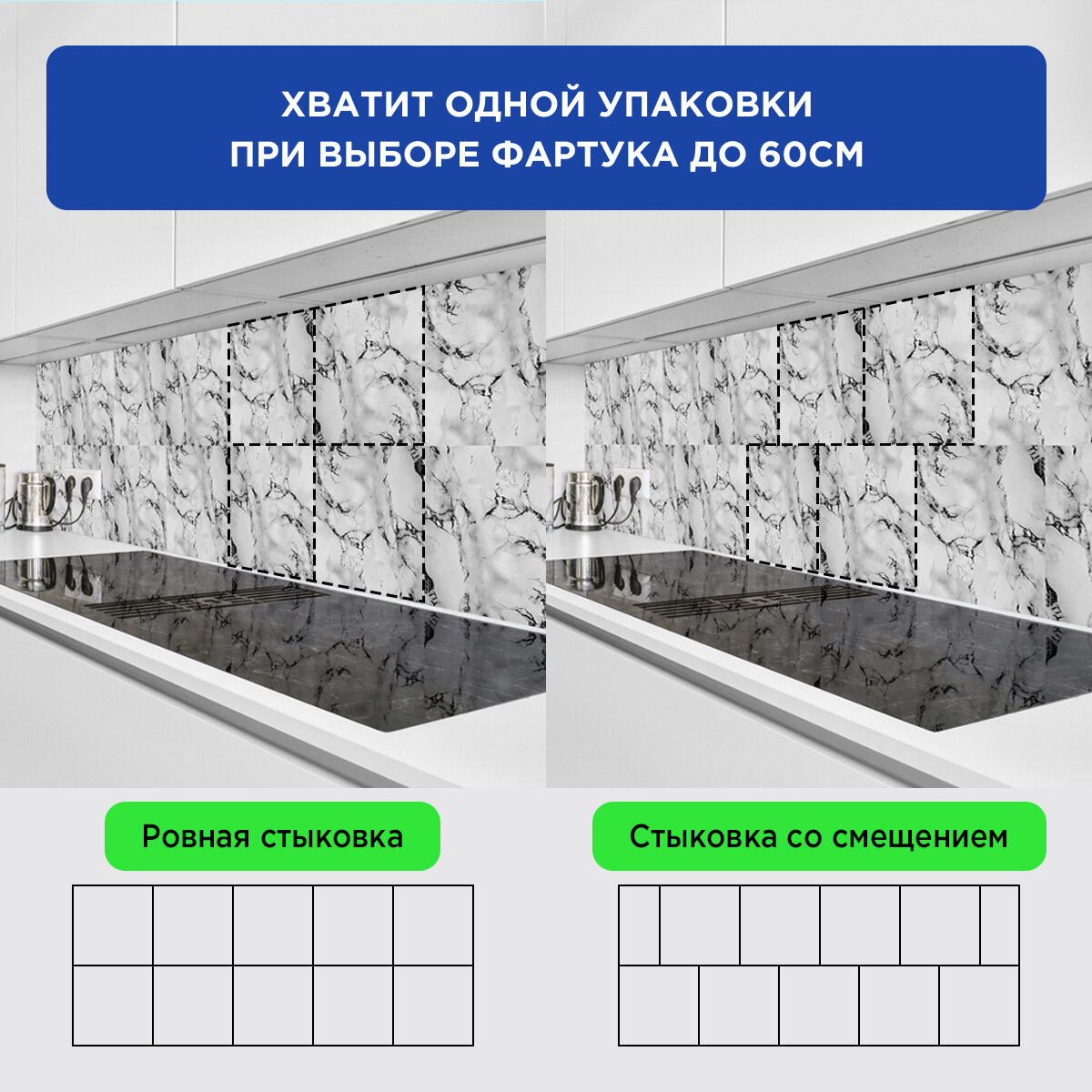 Самоклеющиеся влагостойкие стеновые панели для кухни и ванной ПВХ "Черно-белый мрамор" 30х30 см 20 шт. самоклеющаяся плитка на стену декор вместо кухонного фартука интересное: