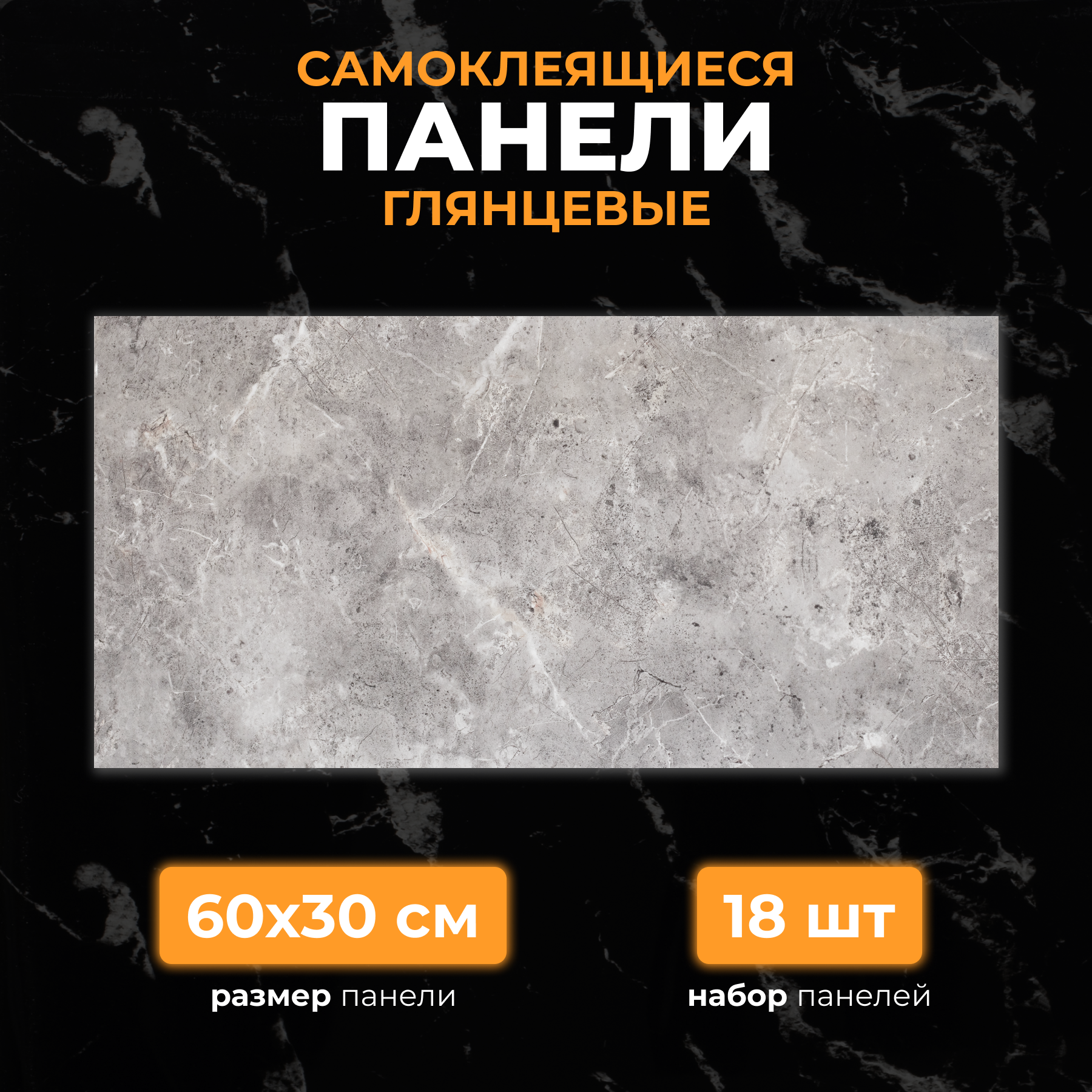 Купить Серый мрамор, 60х30 см плитка глянцевая, самоклеющиеся панели для стен, декор для дома на кухню, в ванную (арт. 89) 18 шт.
