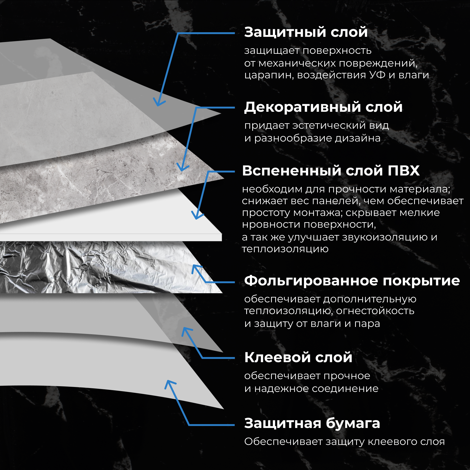 | Подробная комплектация | Самоклеящиеся стеновые панели "Белый мрамор" - 18 шт |