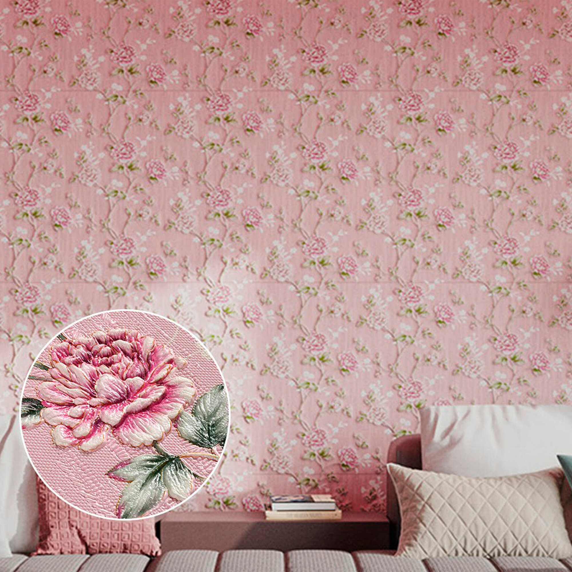 Мега Комплект 20 шт 3D панелей для стен LAKO DECOR, Барокко цвет Розовый, 70x70см, толщина 6мм