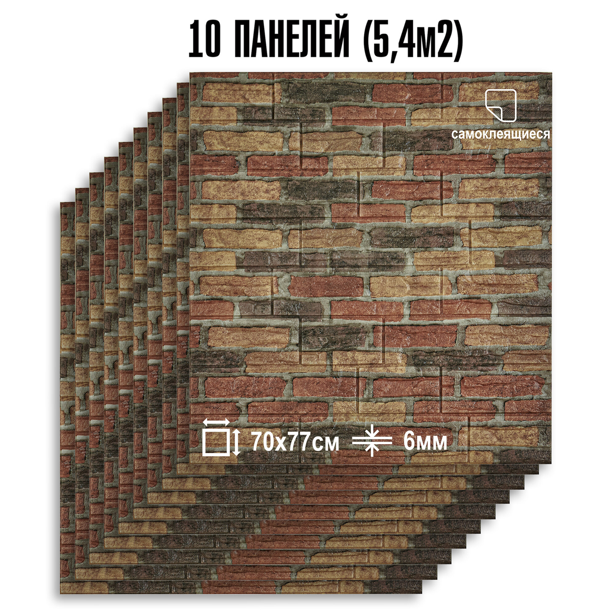Мега Комплект 10 шт 3D панелей для стен LAKO DECOR, коллекция Классический кирпич Кофе, 70x77см, толщина 6мм