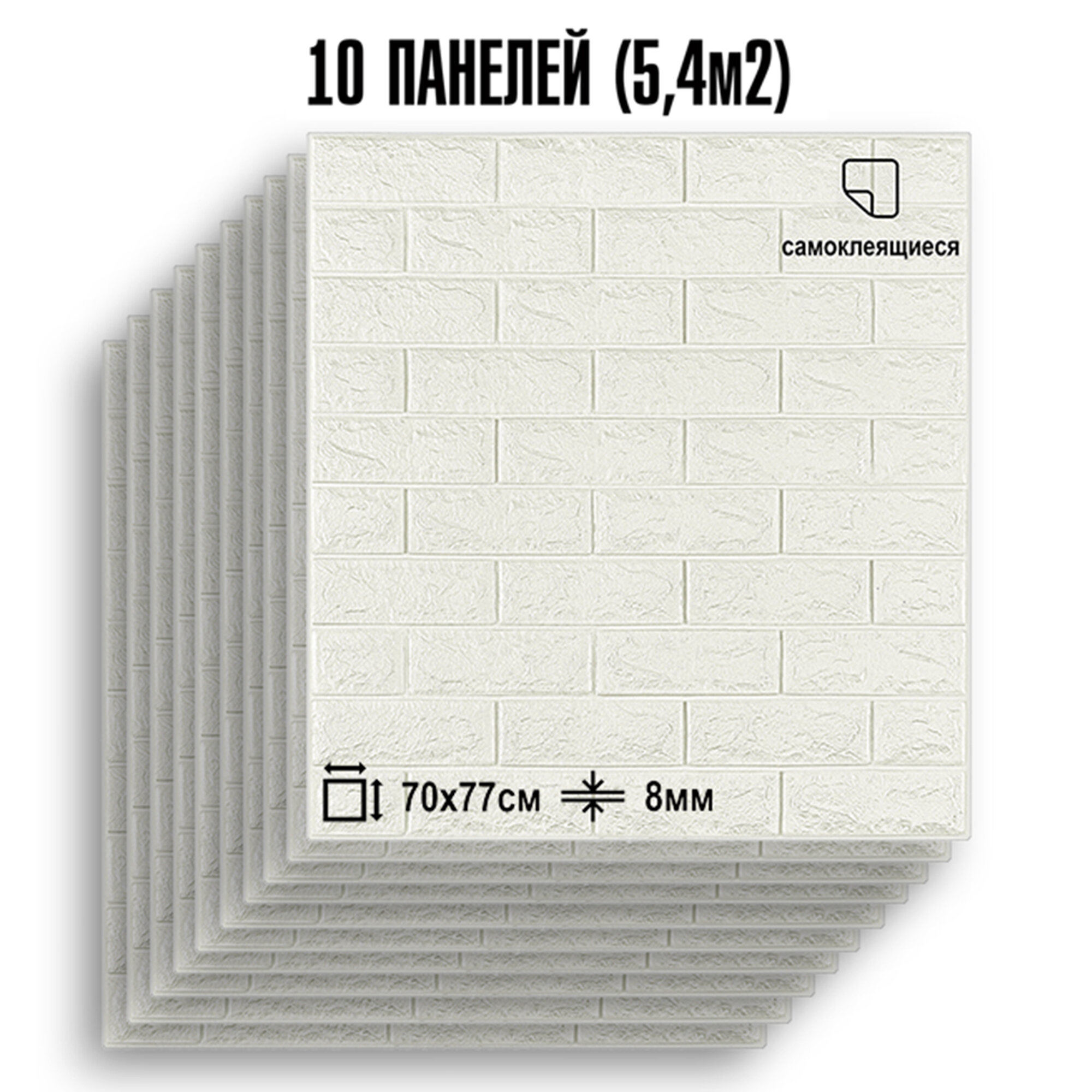 Мега Комплект 10 шт 3D панелей для стен LAKO DECOR, коллекция Классический кирпич Белый, 70x77см, толщина 6мм