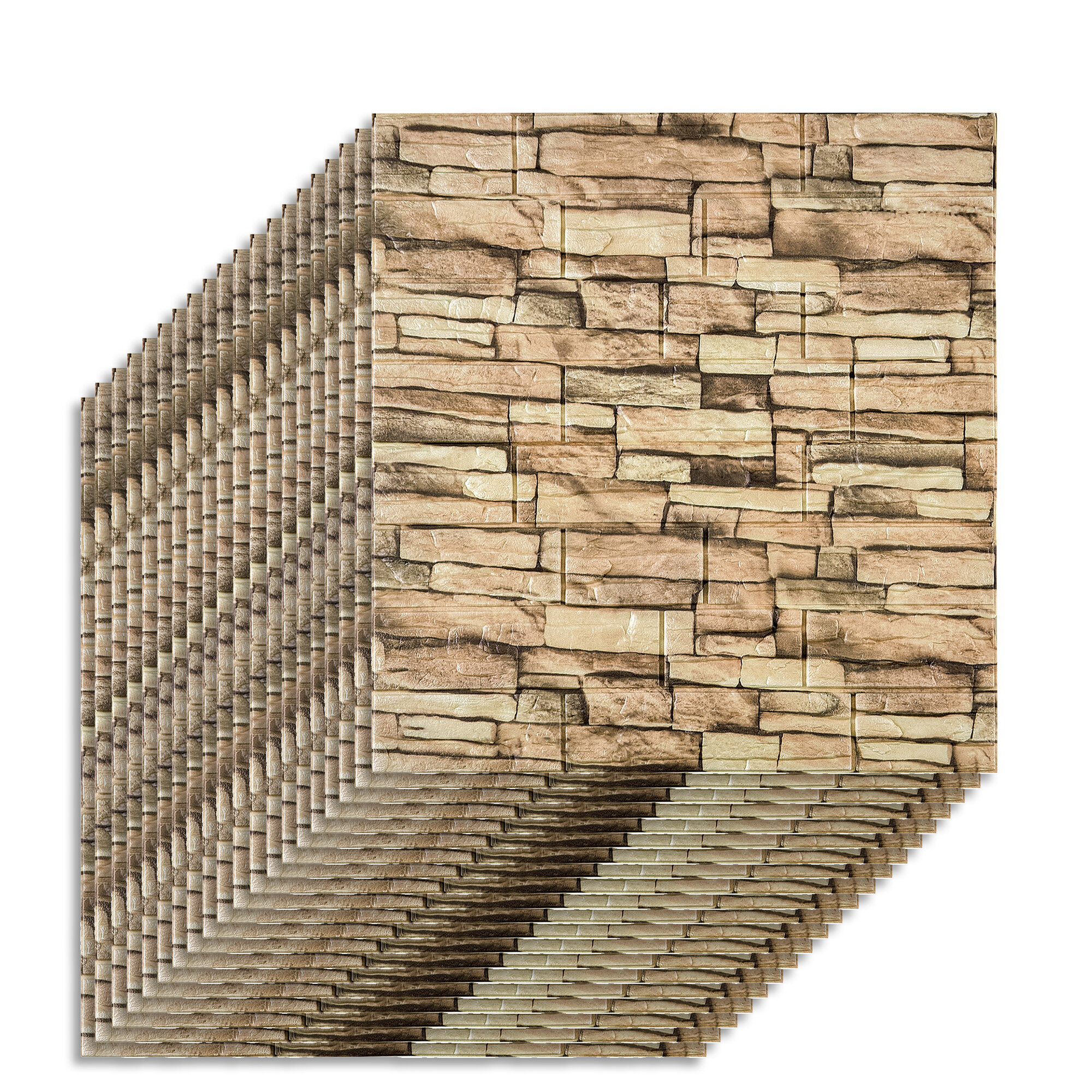 Мега Комплект 20 шт 3D панелей для стен LAKO DECOR, Бежево-белый камень, 70x77см, толщина 6мм