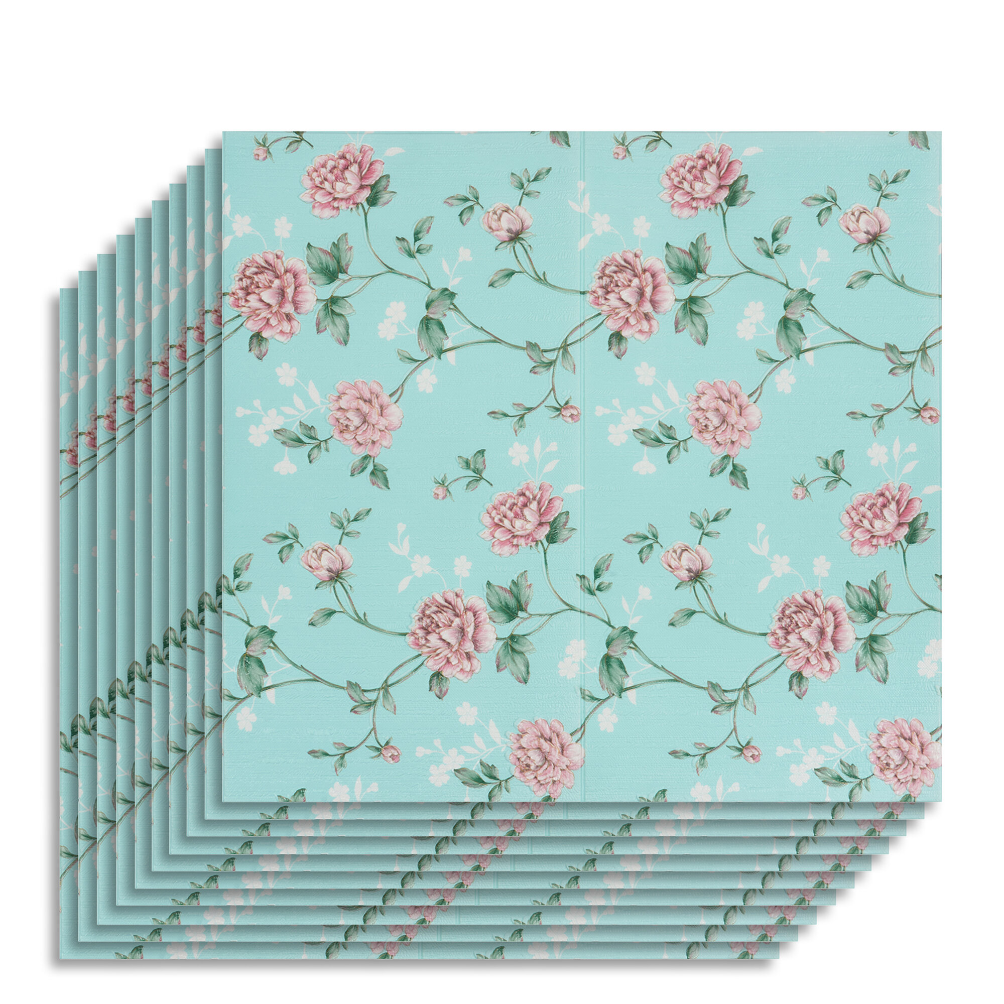 Мега Комплект 10 шт 3D панелей для стен LAKO DECOR, Барокко цвет Голубой, 70x70см, толщина 6мм