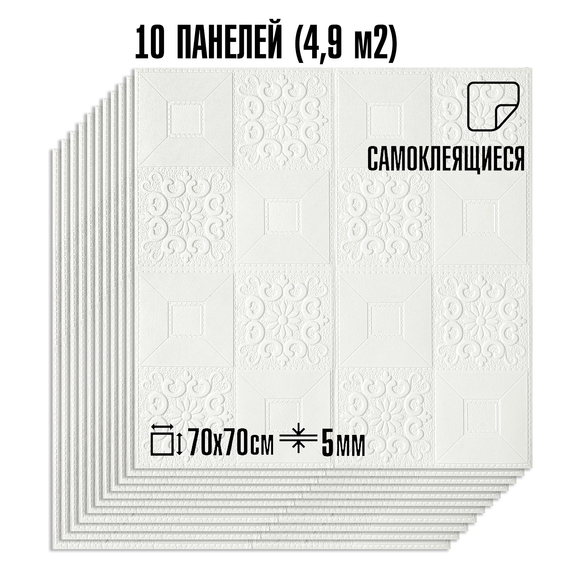 Мега Комплект 10 шт 3D панелей для стен LAKO DECOR, Барокко цвет Белый кирпич, 70x70см, толщина 6мм