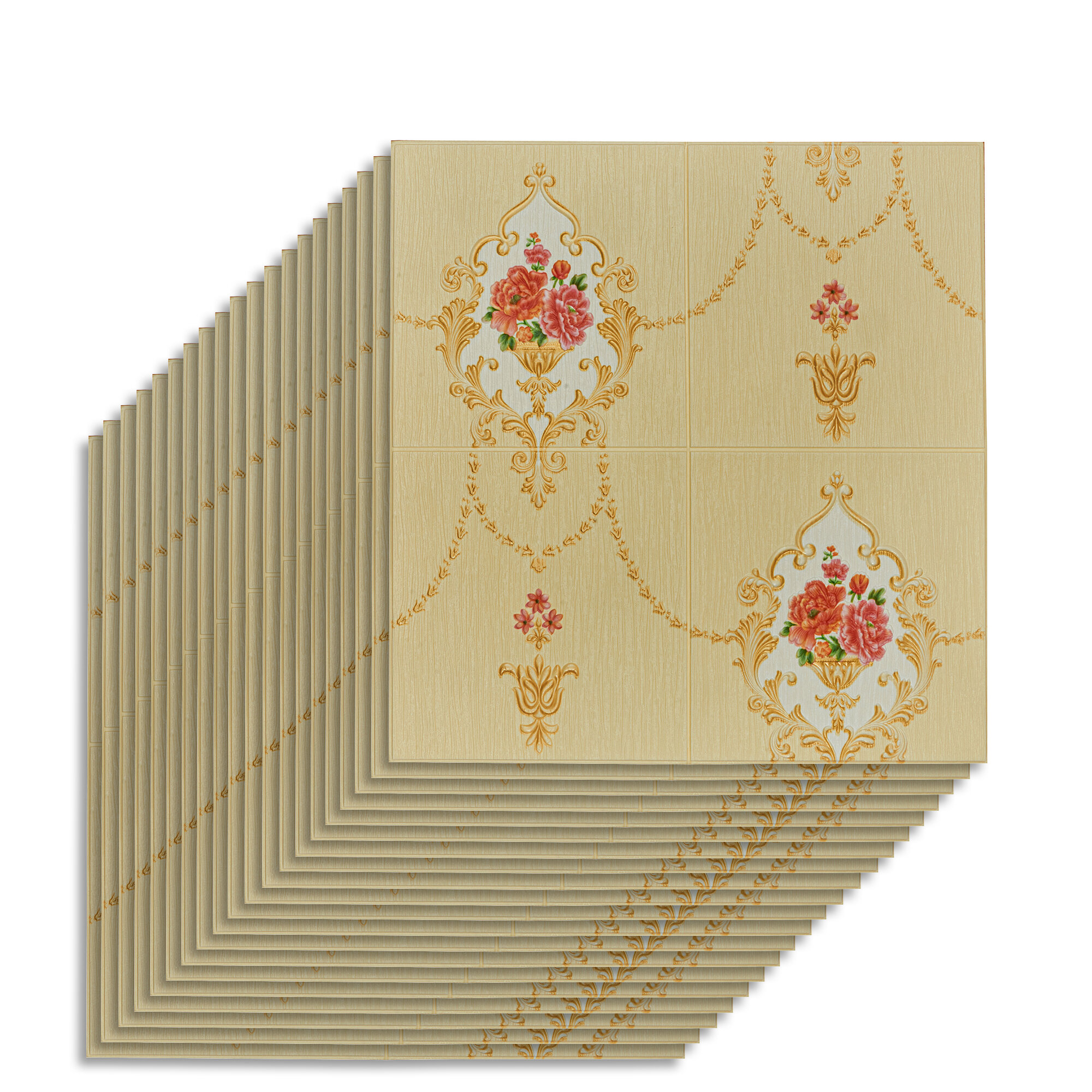 Мега Комплект 20 шт 3D панелей для стен LAKO DECOR, Барокко цвет Золотистый, 70x70см, толщина 6мм