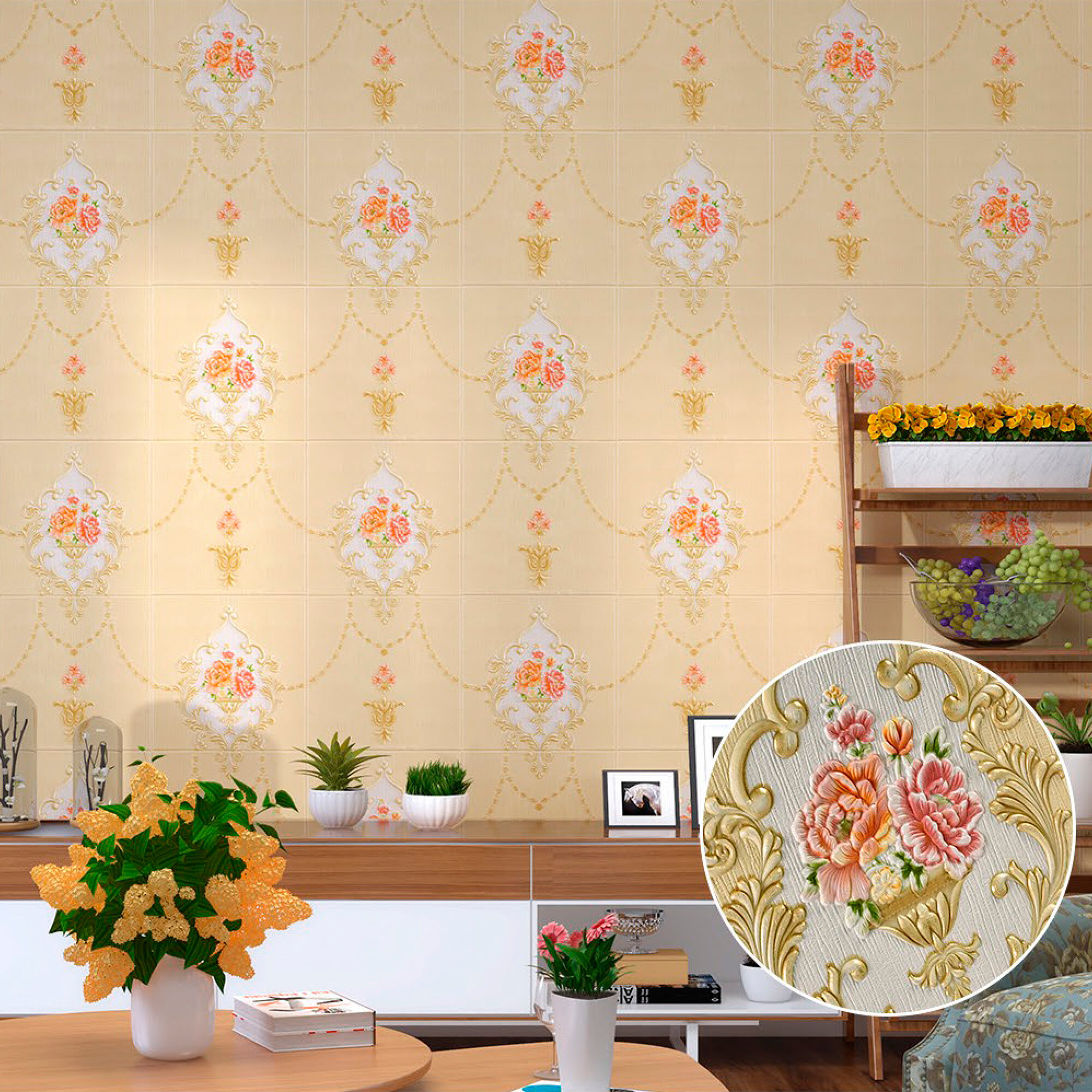 Мега Комплект 20 шт 3D панелей для стен LAKO DECOR, Барокко цвет Кувшинки, 70x70см, толщина 6мм