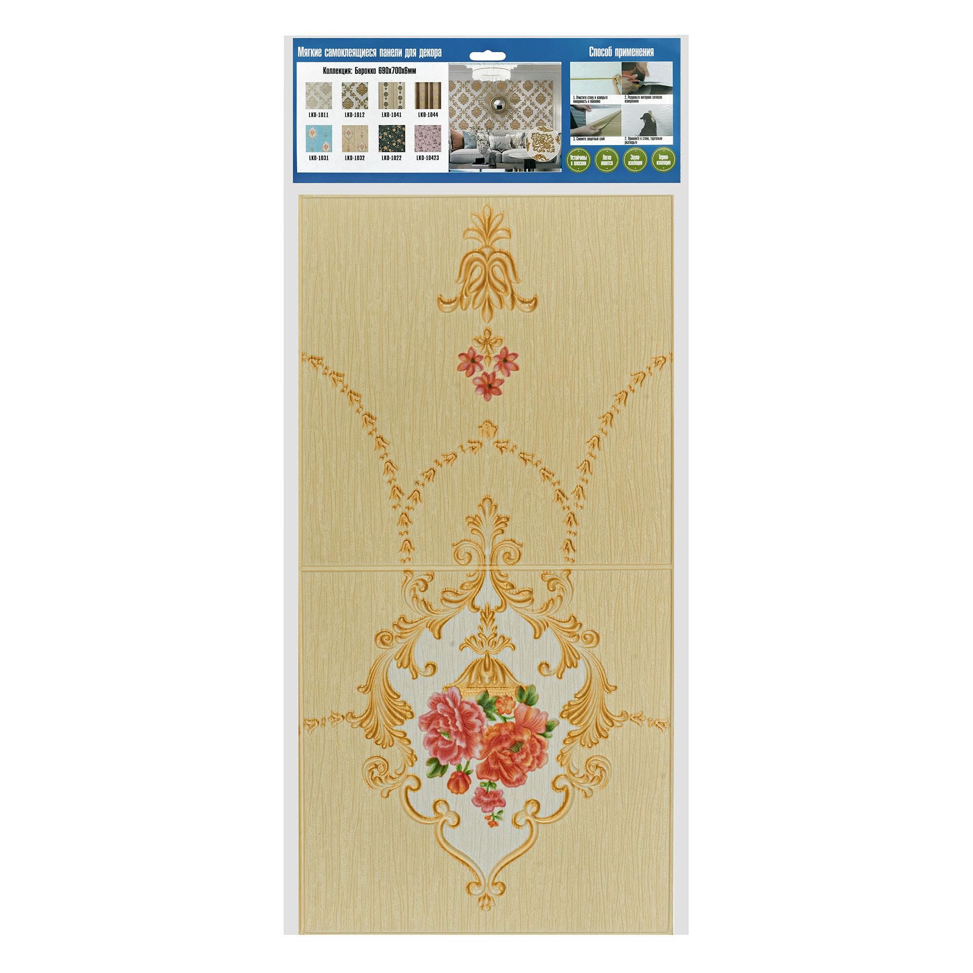 Мега Комплект 10 шт 3D панелей для стен LAKO DECOR, Барокко цвет Кувшинки, 70x70см, толщина 6мм