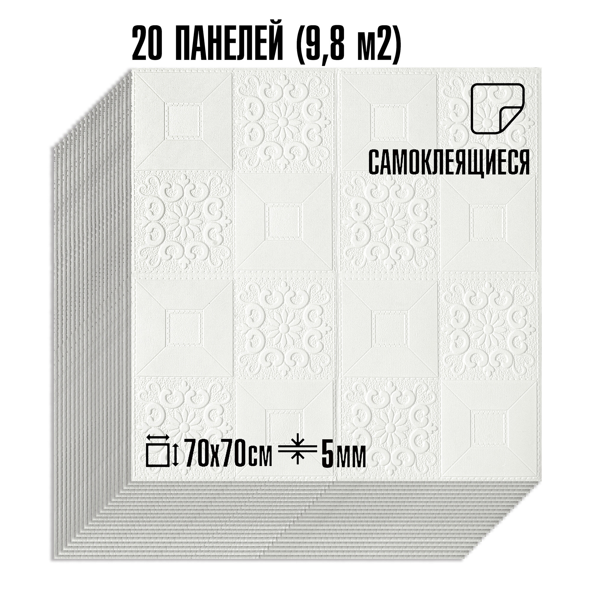 Купить Мега Комплект 20 шт 3D панелей для стен LAKO DECOR, Барокко цвет Белый 2, 70x70см, толщина 6мм