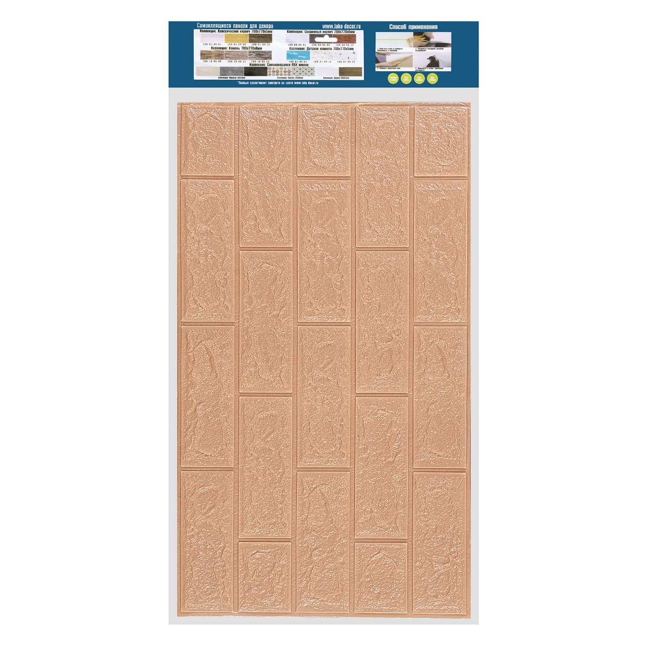 Самоклеящиеся ПВХ панели в комплекте, классический кирпич, бежевый 20 шт