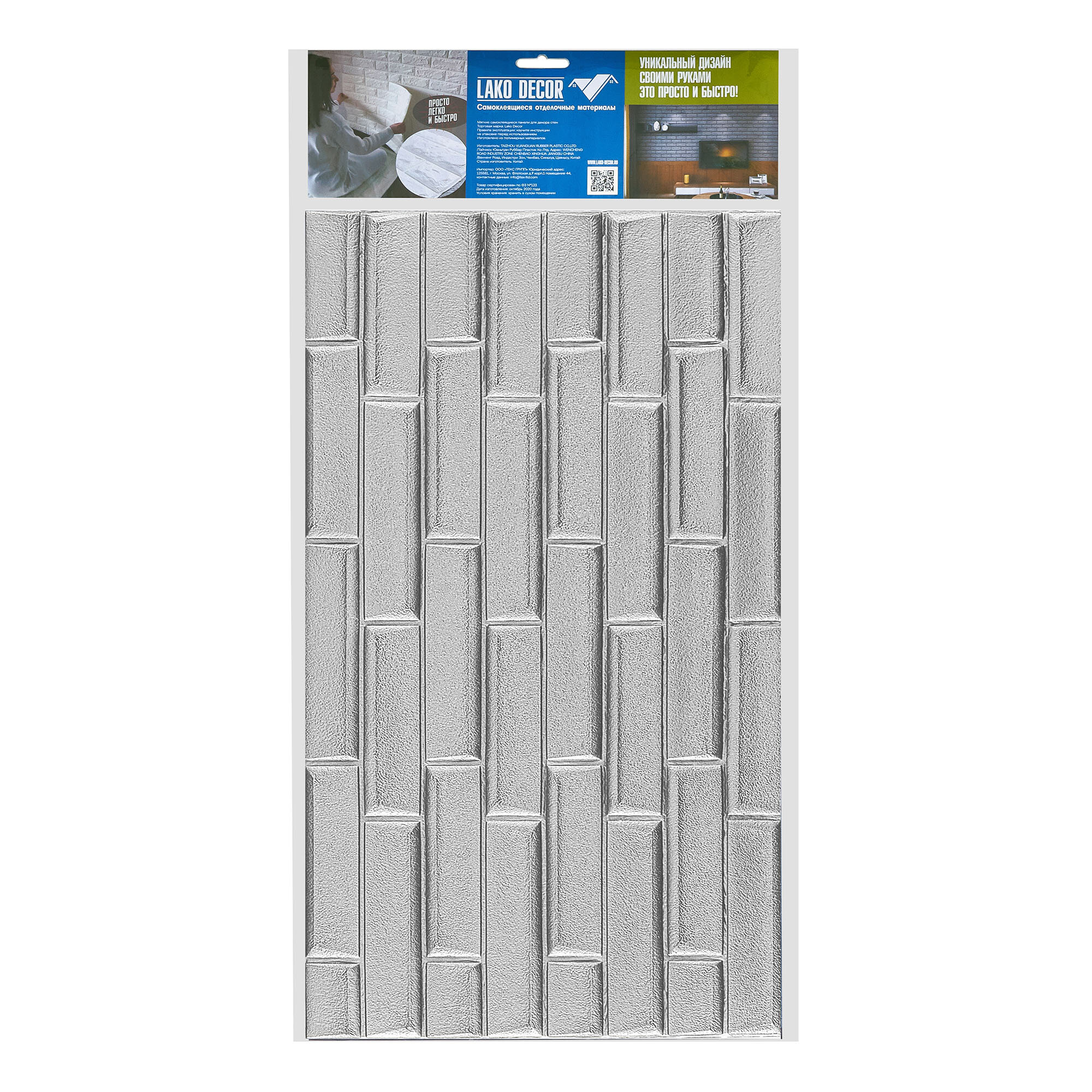 LAKO мега комплект 20 шт 3D панель мягкая самоклеящаяся Кирпич Серебристо-серый 70x77см LKD-01-04-14-MEGA20