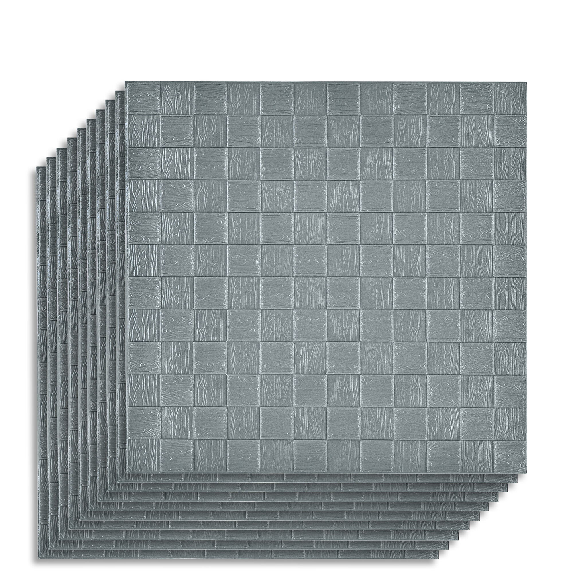 Купить Мега Комплект 10 шт 3D панелей для стен LAKO DECOR, Деревянная мозаика серебристо-серый, 70x70см, толщина 6мм