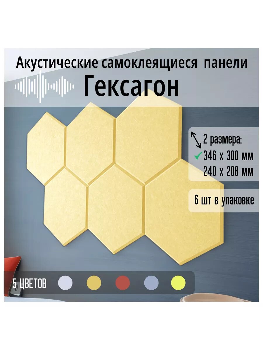 Самоклеящиеся акустические панели, 346х300х9мм соты, 6 штук интересное: