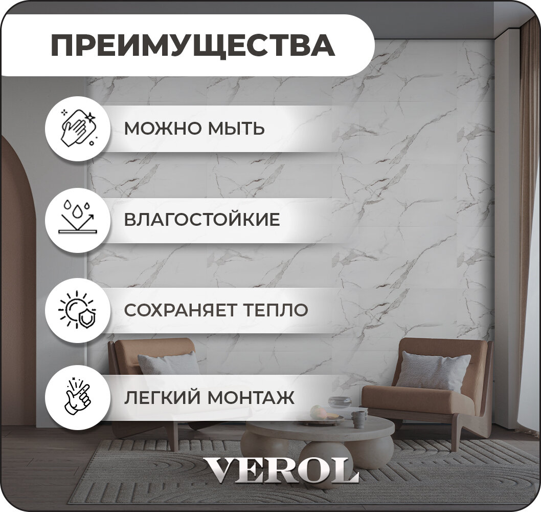 Стеновые панели самоклеящиеся VEROL "Мрамор" 30х60 см 18 шт., влагостойкое интерьерное покрытие ПВХ, отделка стен, декор для дома интересное: