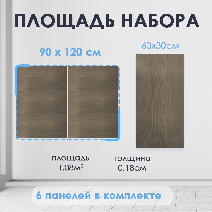 | Подробная комплектация | Упаковка Панели ПВХ самоклеящиеся 6 шт. размер 30х60, толщиной 0.18 см |