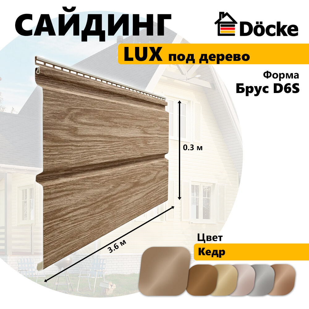 Купить Сайдинг Docke LUX из ПВХ под дерево, Брус D6S, (длина 3,6 м), кедр