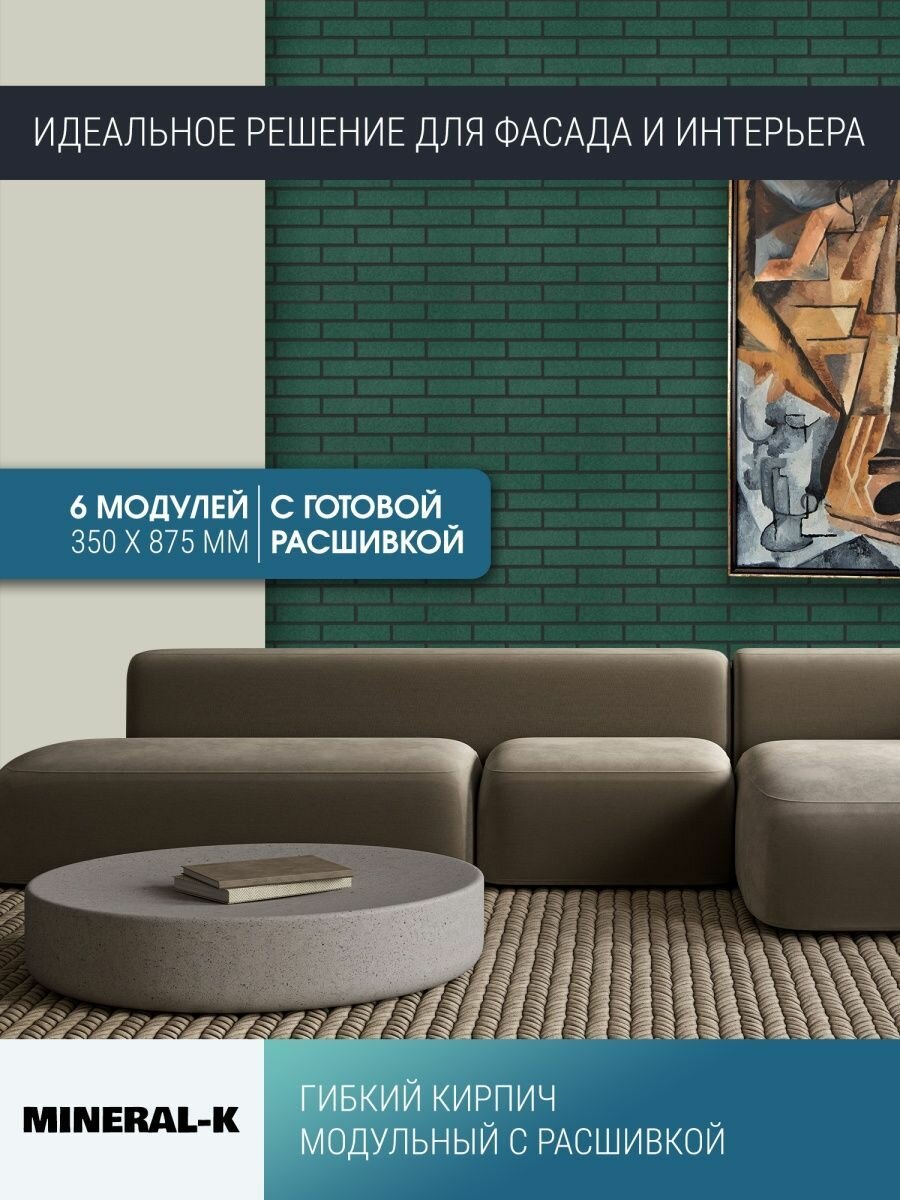 СохранитьГибкий модульный кирпич с расшивкой - 1,6 м²/зелёная бирюза & черный графит интересное:
