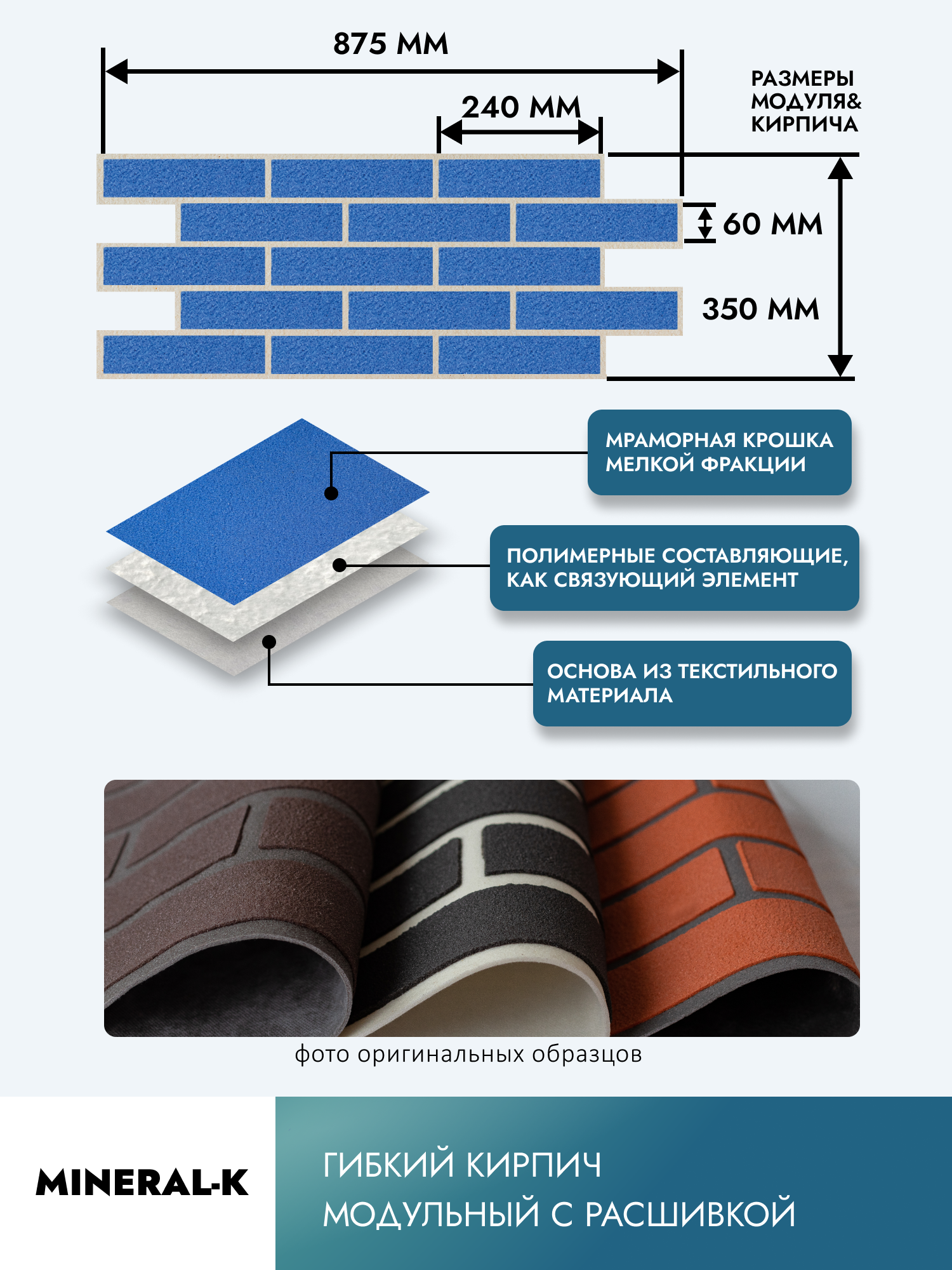 Гибкий модульный кирпич с расшивкой - 1,6 м²/красная сиена & черный графит