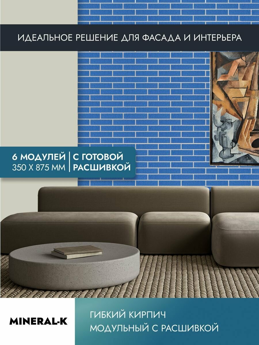 Купить Гибкий модульный кирпич с расшивкой - 1,6 м²/королевский синий & белый лён