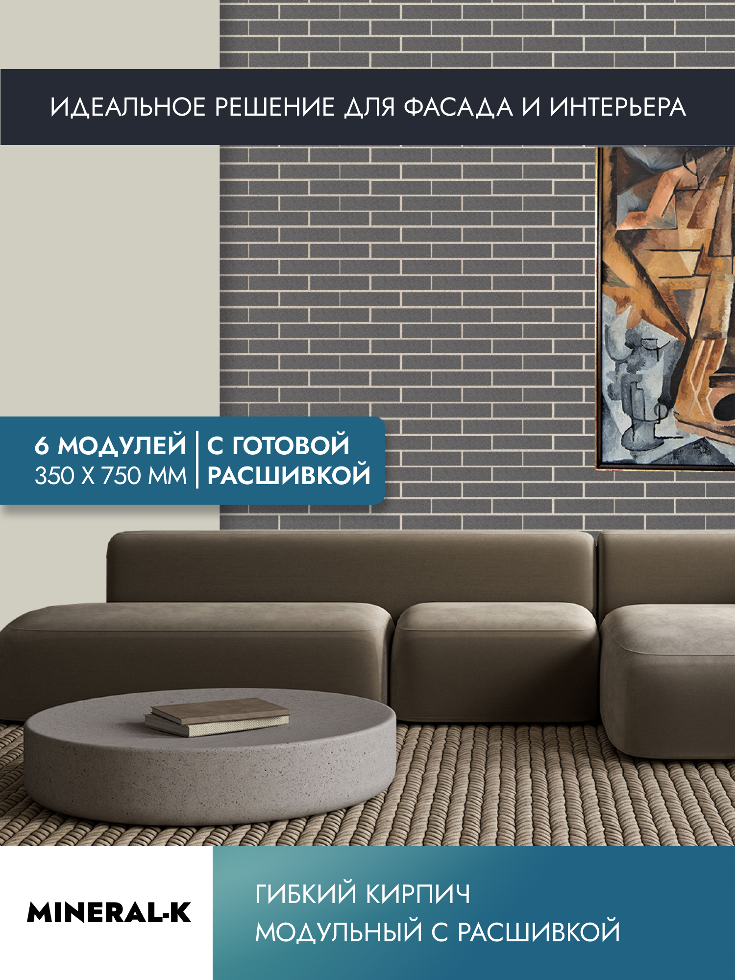 СохранитьГибкий модульный кирпич с расшивкой - 1,6 м²/серый пепел & белый лён интересное: