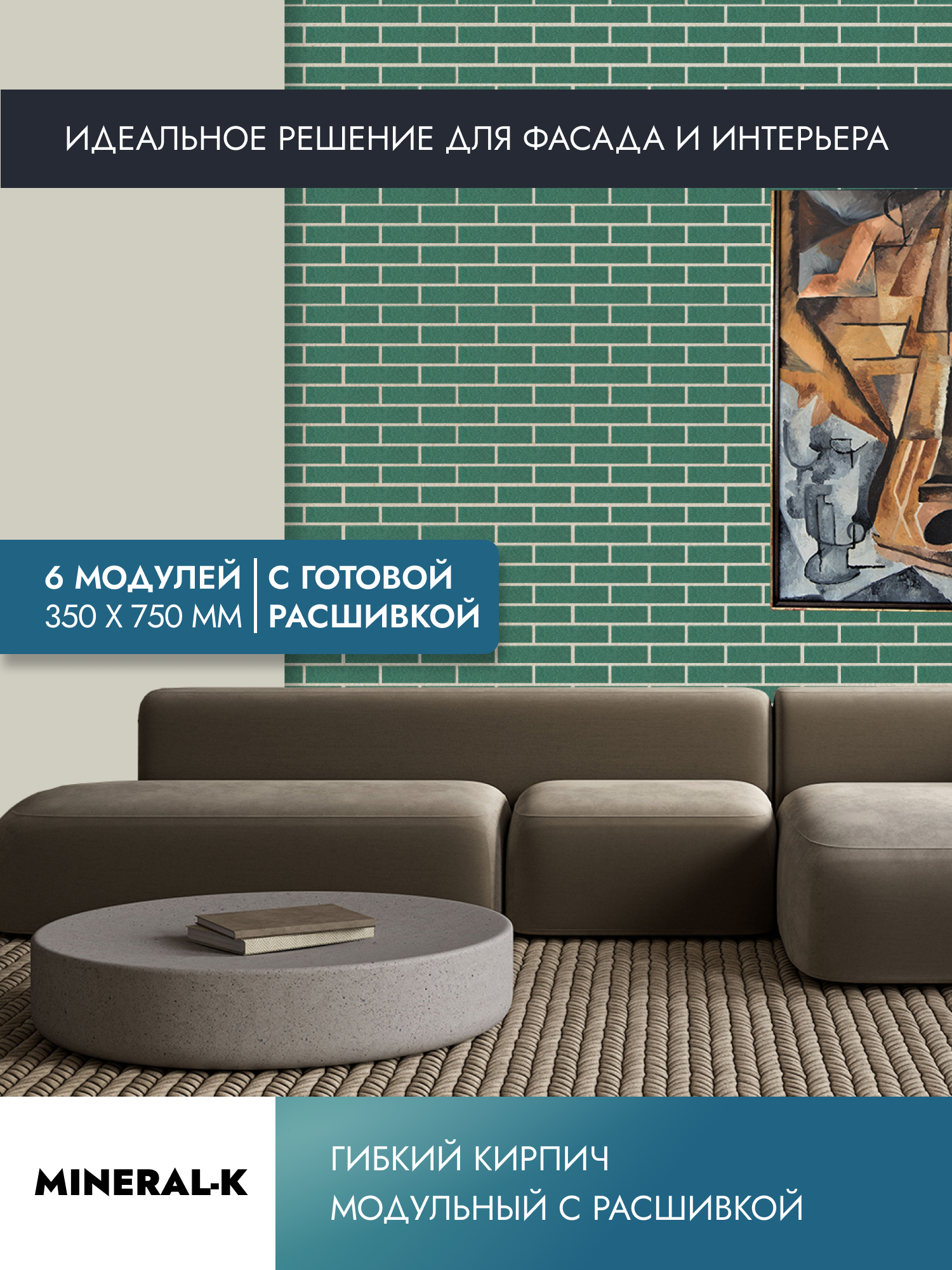 Ниже Вы можете прочитать отзывы на Гибкий модульный кирпич с расшивкой - 1,6 м²/зелёный опал & белый лён, ознакомится с подробными характеристиками, посмотреть интересные обзоры и фотографии на Гибкий модульный кирпич с расшивкой - 1,6 м²/зелёный опал & белый лён.