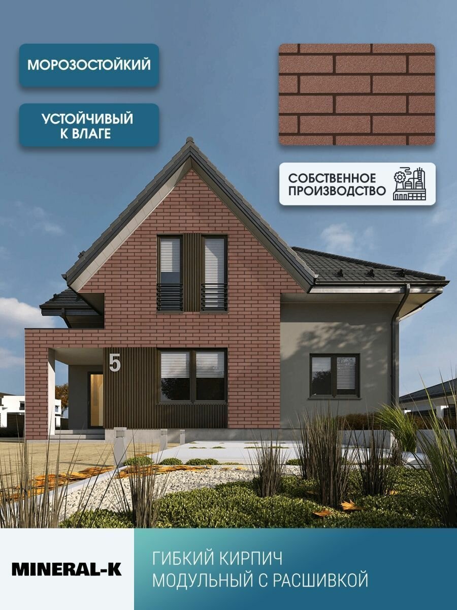 Гибкий модульный кирпич с расшивкой - 1,6 м²/красная сиена & черный графит