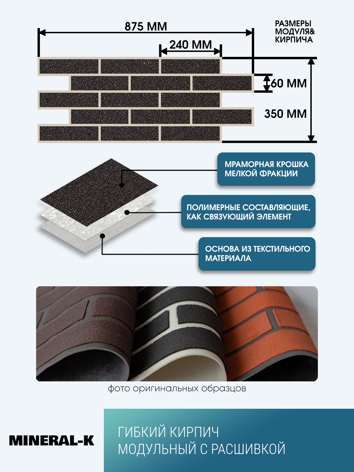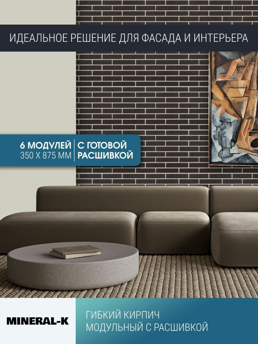 СохранитьГибкий модульный кирпич с расшивкой - 1,6 м²/древесный уголь & белый лён интересное:
