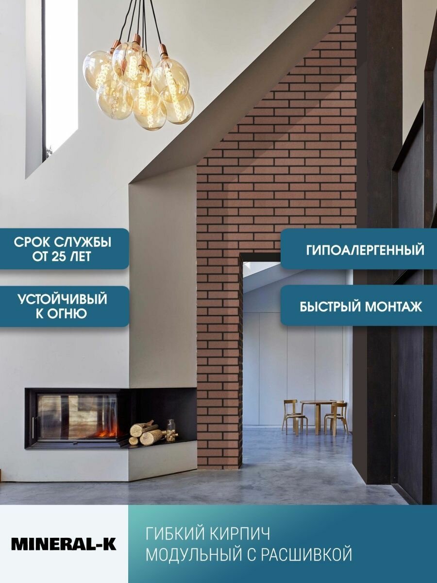 Гибкий модульный кирпич с расшивкой - 1,6 м²/красная сиена & белый лён