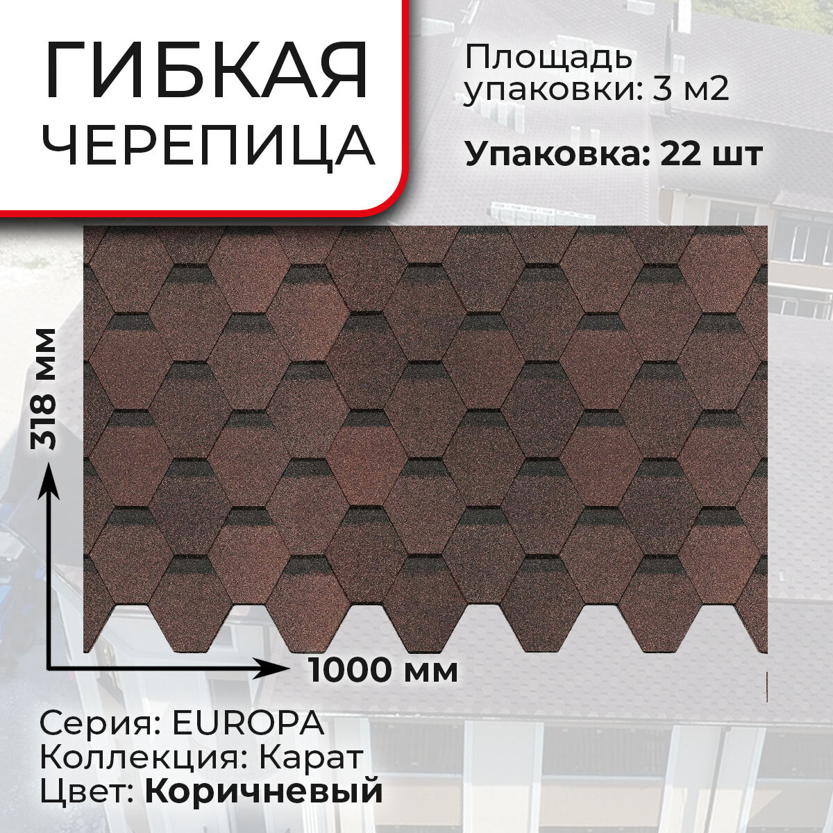 Гибкая черепица Docke EUROPA, карат, 1000/321/2,8 мм (3 м2), Коричневый интересное: