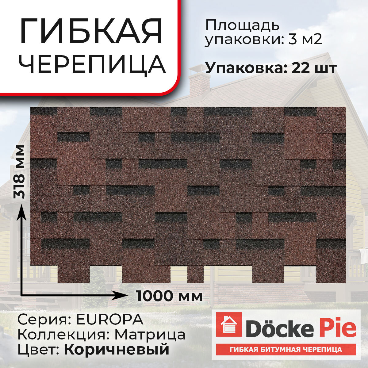 Гибкая черепица Docke EUROPA, матрица,1000/321/2,8 мм (3 м2), Коричневый интересное: