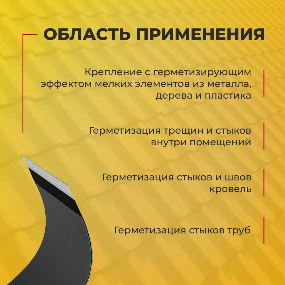 | Дополнительная информация | основные области применения: герметизация швов и стыков в конструкциях из различных материалов (металл, дерево, пластик); устройство примыканий на плоских и скатных кровлях; ремонт систем водостока; герметизация пароизоляционных пленок; герметизация монтажных швов при укладке профилированных мембран «Planter»; гидроизоляция металлических труб холодного водоснабжения; герметизация мест стыков конструкций из ячеистого поликарбоната; гидроизоляция деревянных изделий в бетонных и каменных конструкциях (оконные и дверные блоки) |
