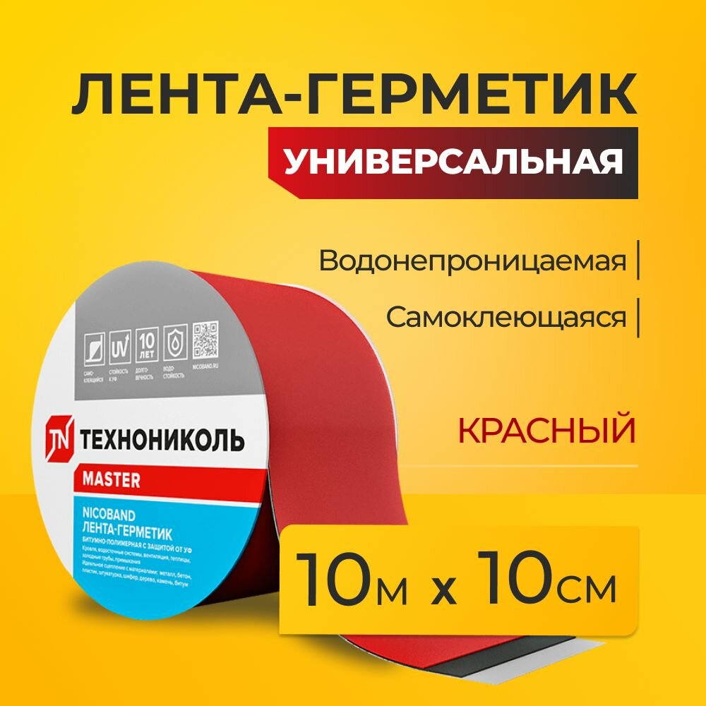 Самоклеящаяся битумная лента герметик NICOBAND ТехноНиколь 10 м х 10 см, красный