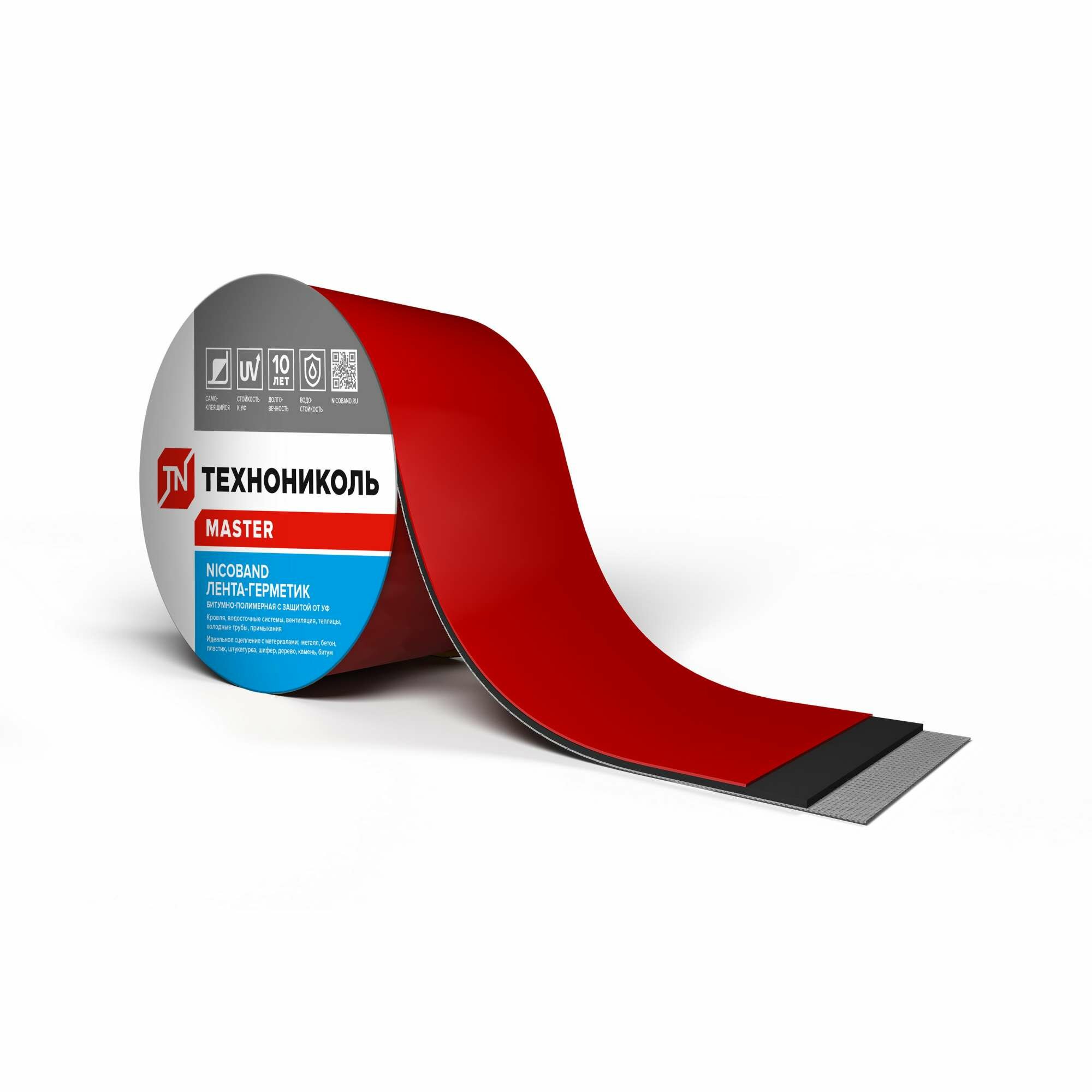Герметизирующая лента Никобэнд (Nicoband) ТЕХНОНИКОЛЬ самоклеющаяся лента-герметик, красный 3 м х 10 см
