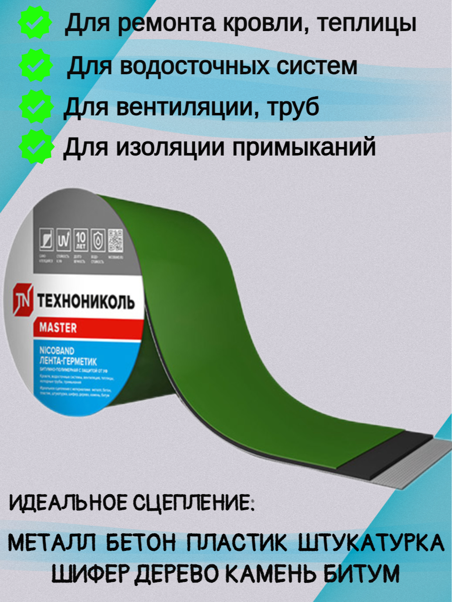 СохранитьЛента битумно-полимерная NICOBAND зеленый 10м * 10 см интересное: