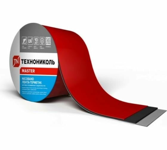 Купить Лента-герметик ТехноНиколь NICOBAND самоклеящаяся 3м х 10см, Красная, для пластика/ бетона/ металла/ дерева, 3м х 10см