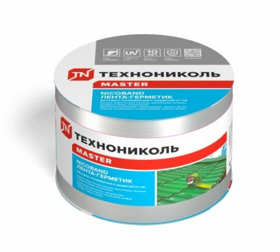 Купить Лента-герметик ТехноНиколь NICOBAND, самоклеящаяся, Серебристая, 3м х 10см, универсальная