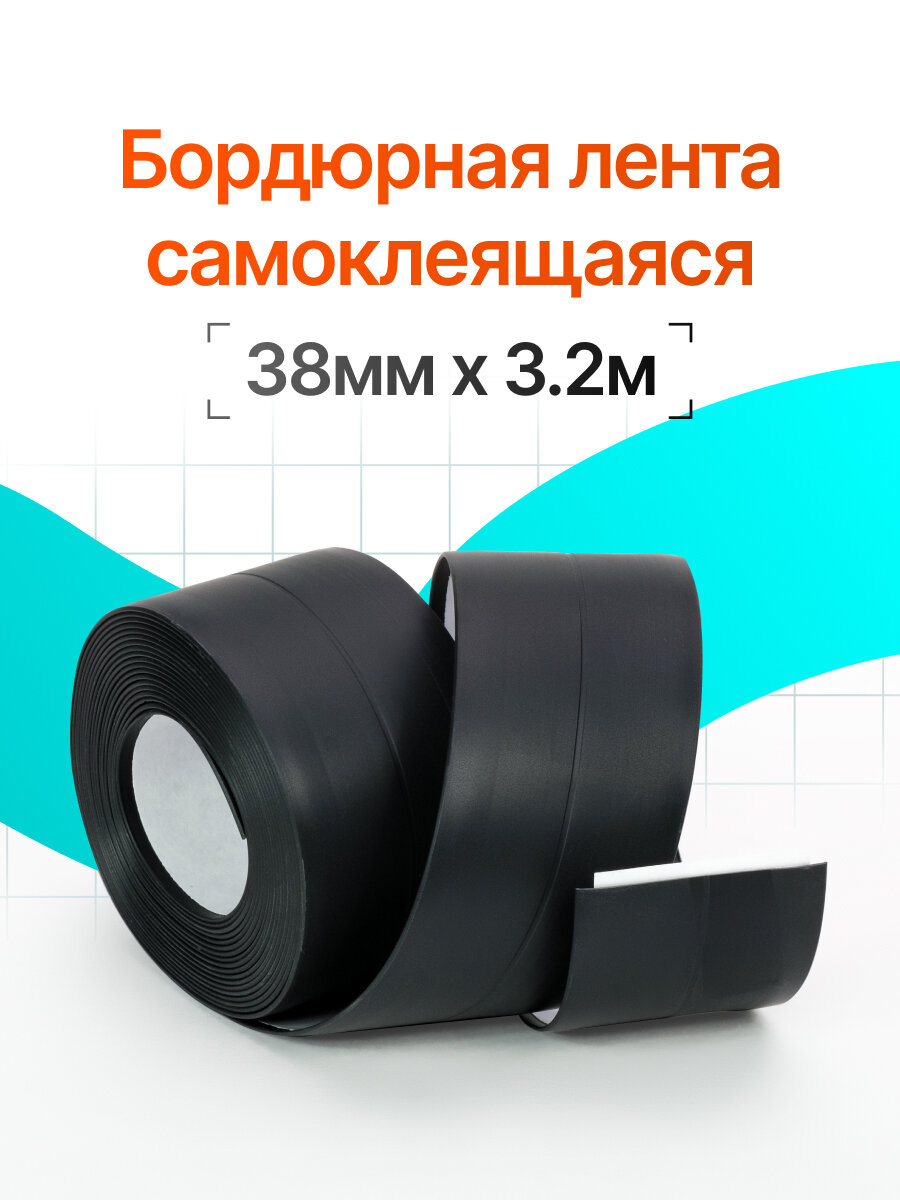 Бордюрная лента 38 мм х 3,2 м. Черная. Самоклеящая. интересное: