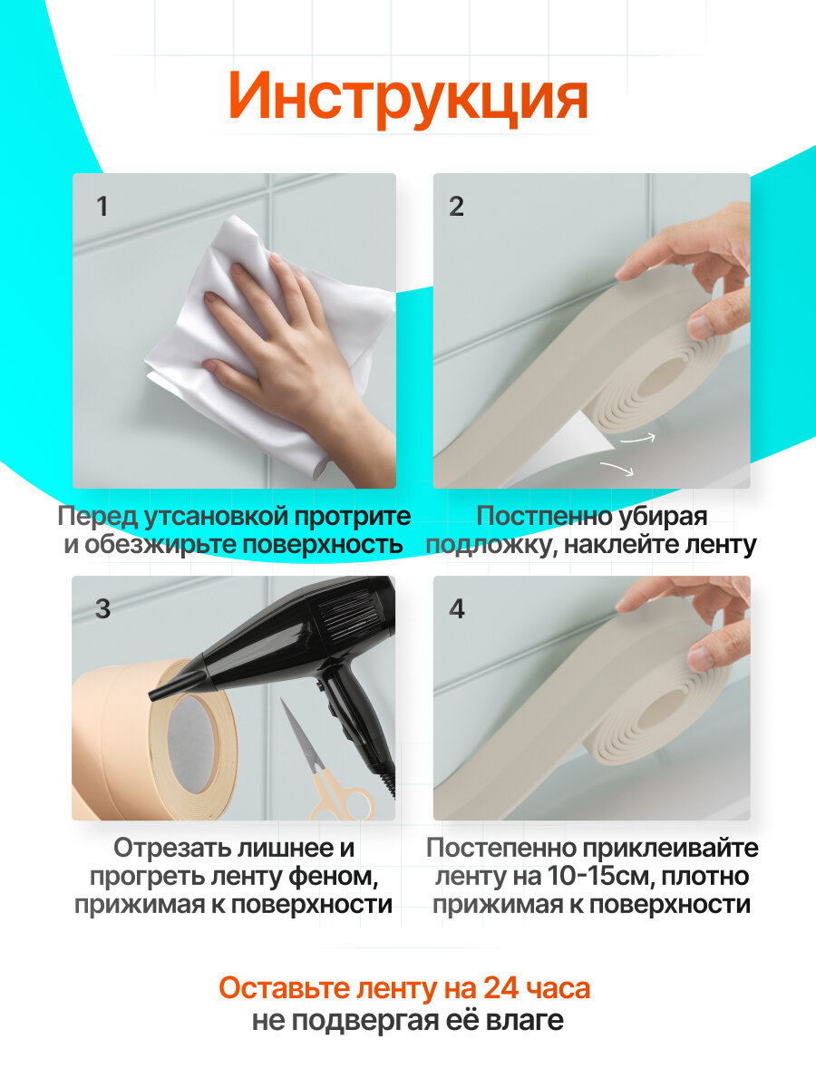 Бордюрная лента 38 мм х 3,2 м. Бежевая (крем). Самоклеящаяся. Для ванной и кухни. интересное: