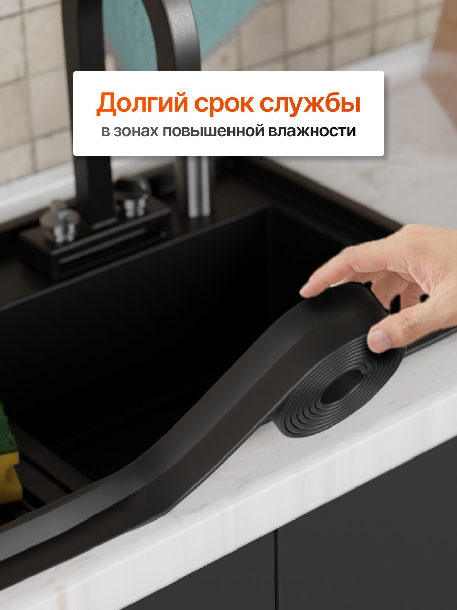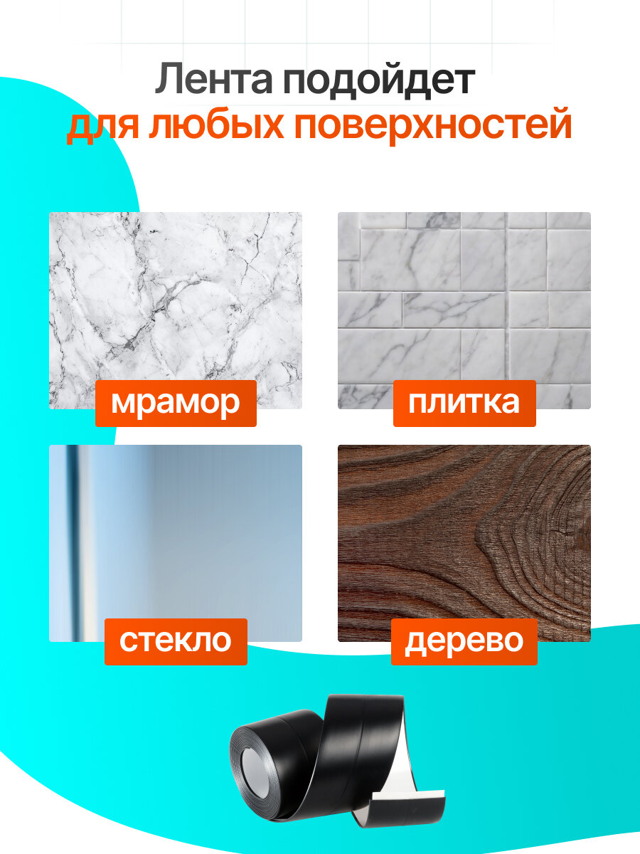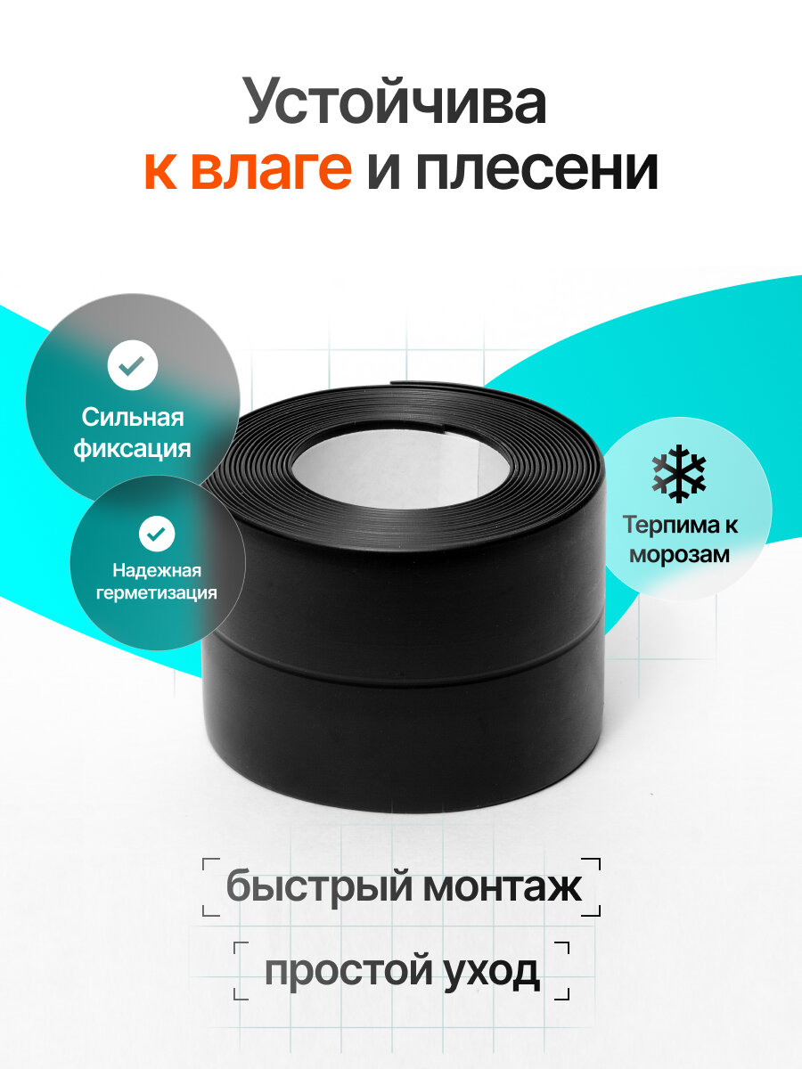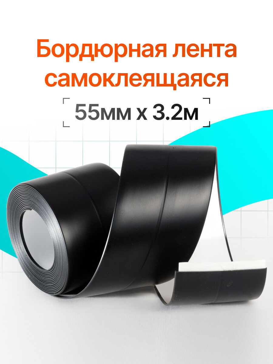 Бордюрная лента 55 мм х 3,2 м, Черная, Самоклеющаяся. Для ванны и кухни. интересное: