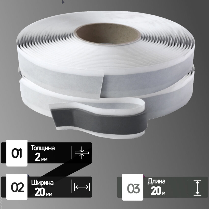 Бутилкаучуковая лента Маска tape О, 20 х 1,5 мм (25 метров)