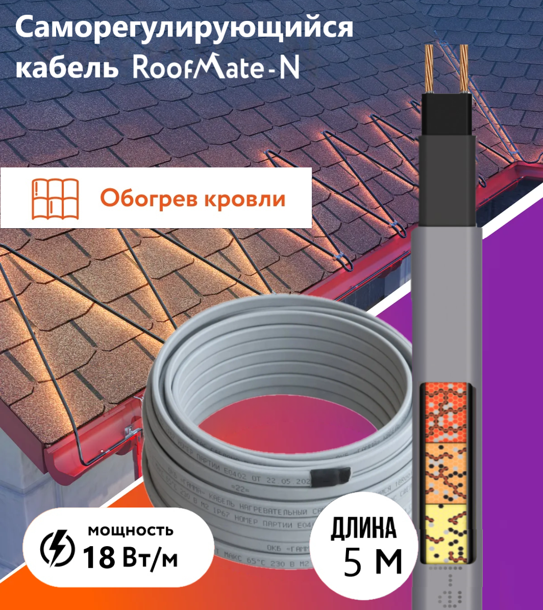 СохранитьГреющий кабель для обогрева кровли и водостоков RoofMate-N, 18 Вт., бухта 5 м. интересное: