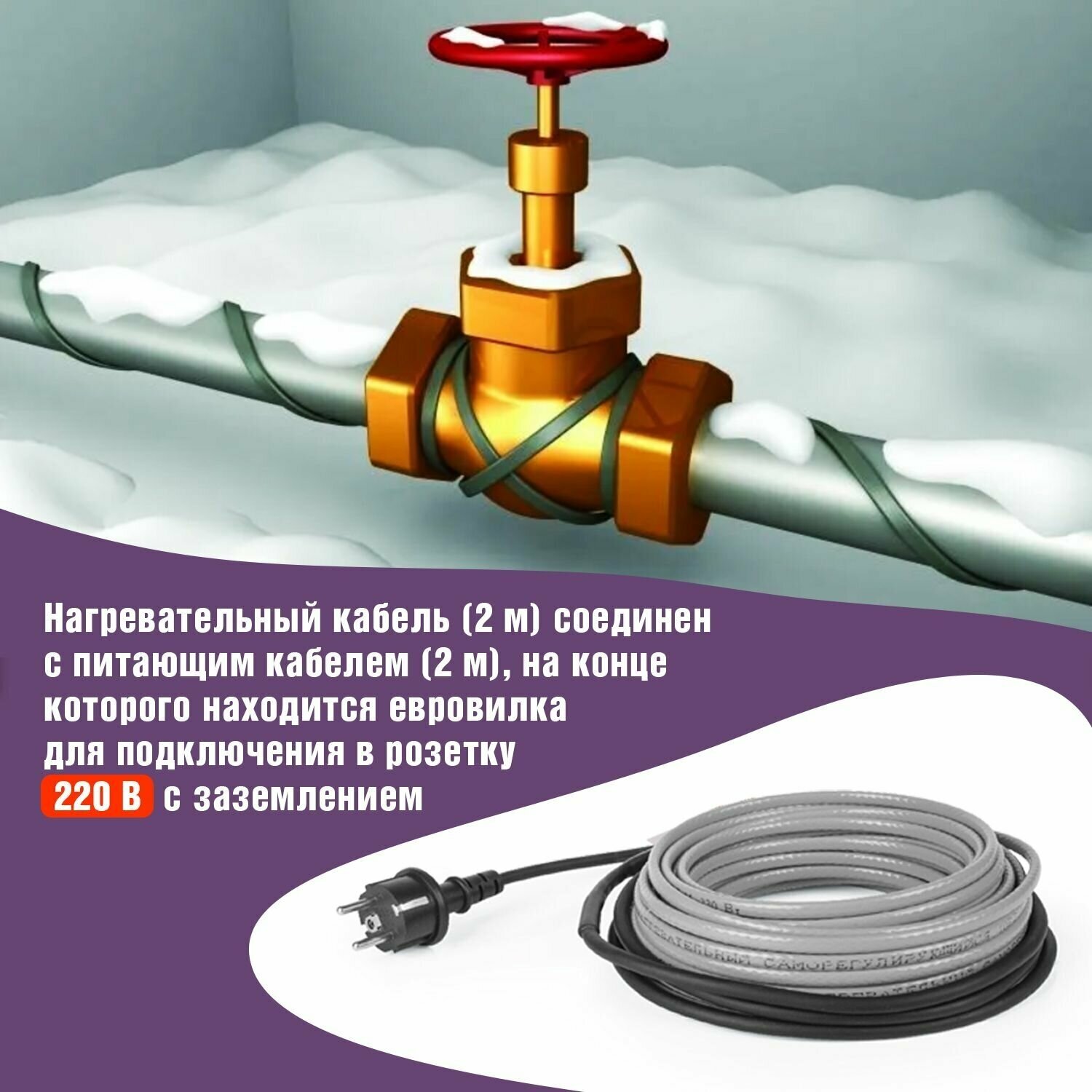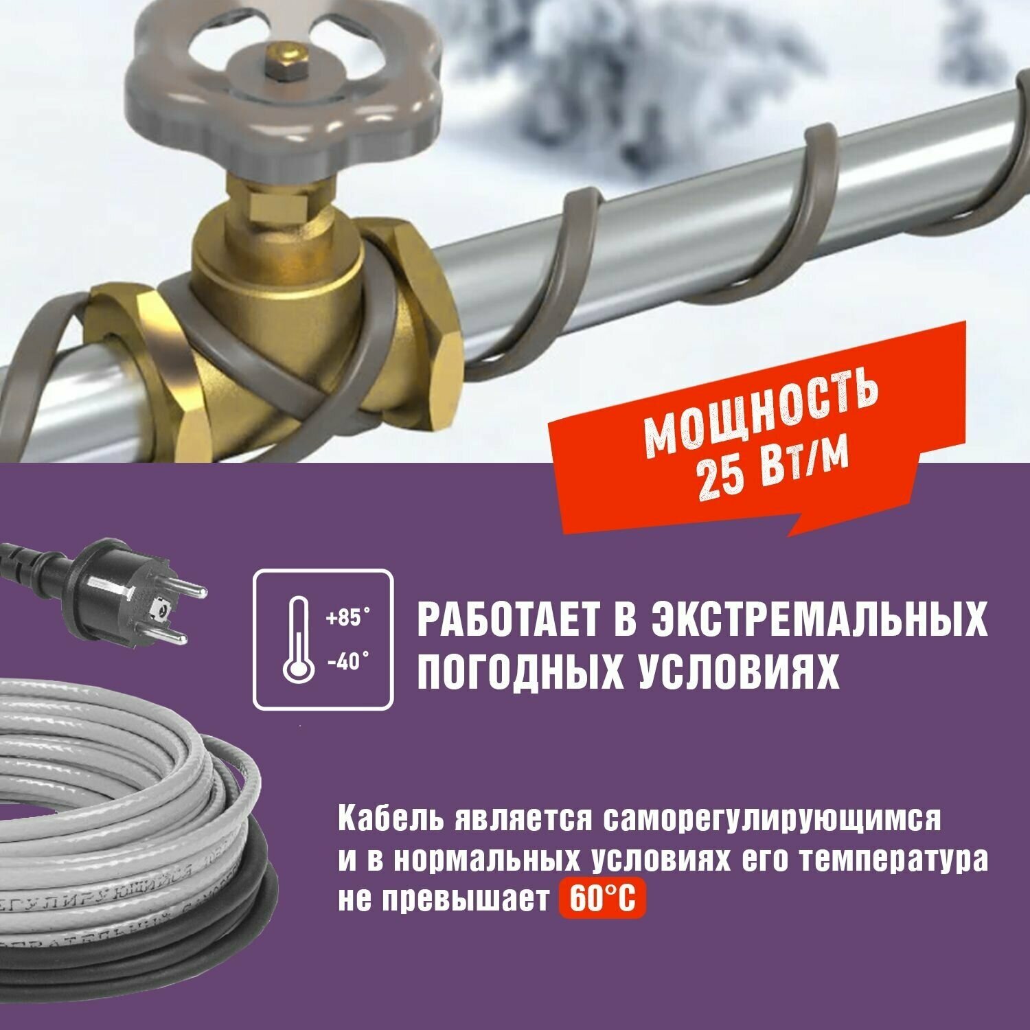 Греющий кабель обогрев люкс Греющий саморегулирующийся кабель в трубу 6 метров Обогрев Люкс с сальником