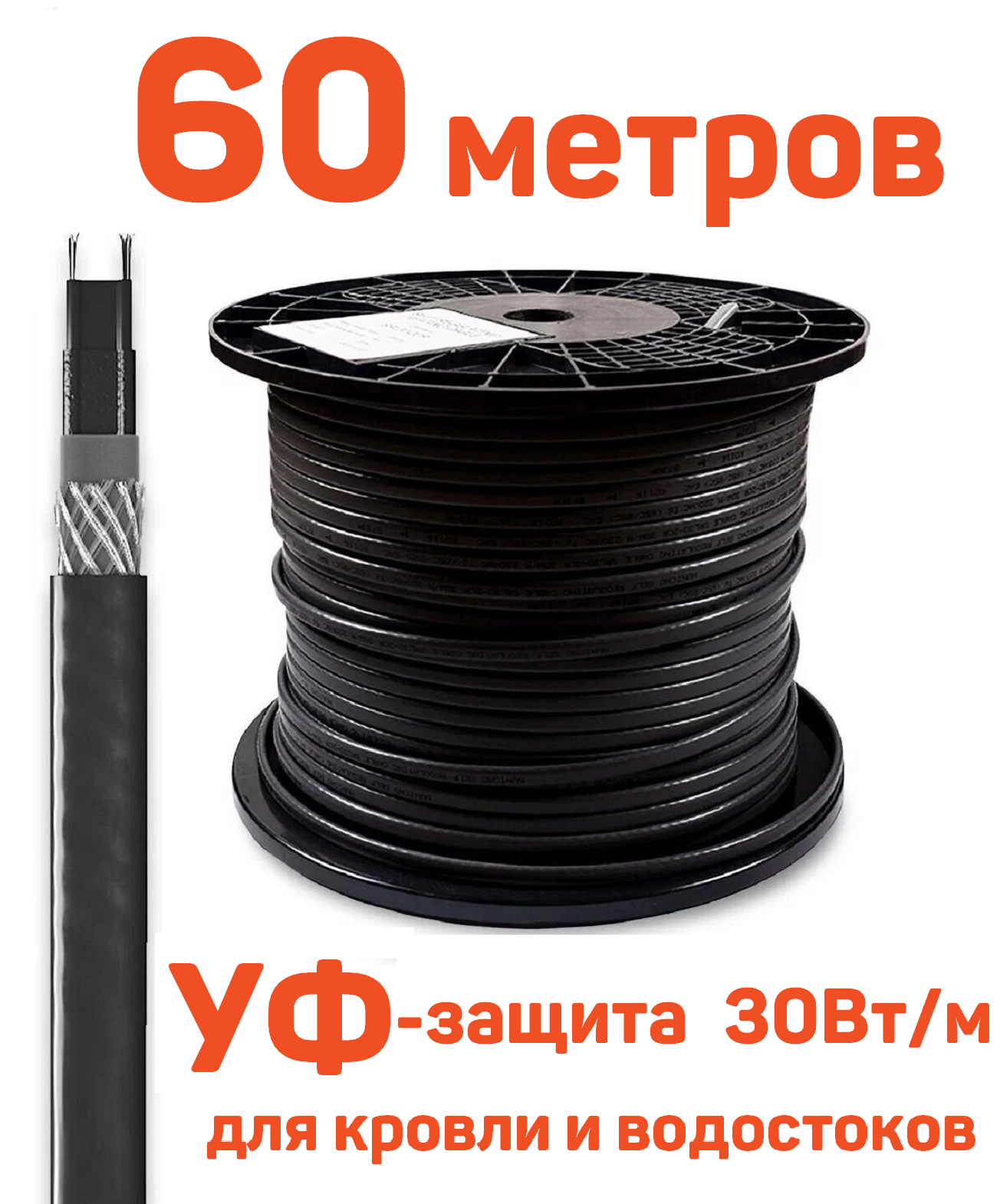 СохранитьГреющий кабель GRX SRL 30-2 CR 60 м для кровли, водостоков саморегулирующий с УФ-защитой, 30 Вт/м интересное: