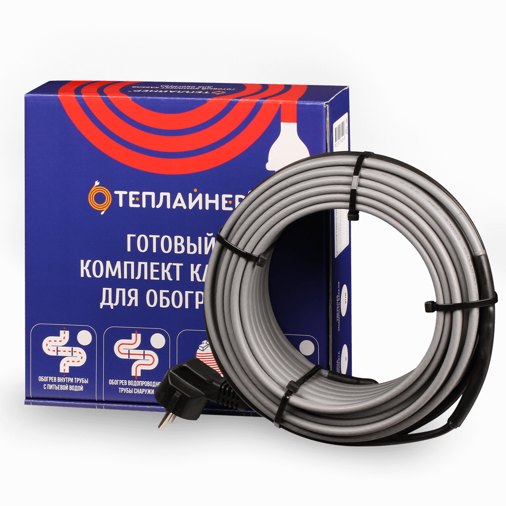 Греющий кабель саморегулирующийся на трубу 9 метров - 144 Вт. Теплайнер. Комплект.